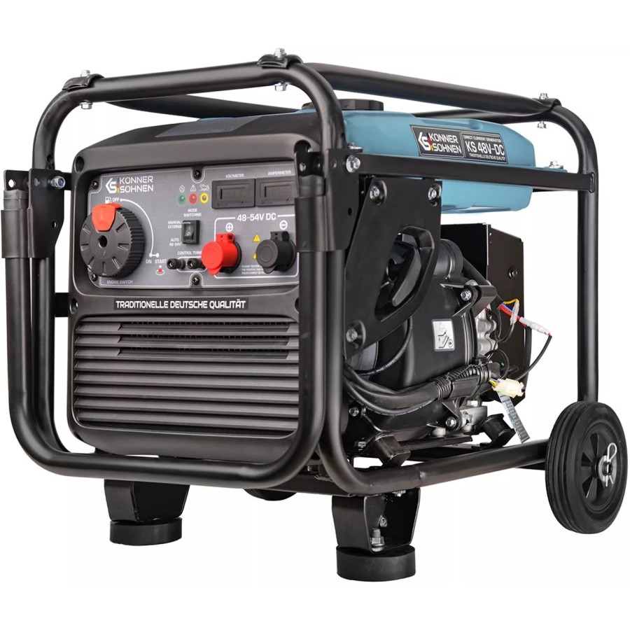 Висока потужність заряджання при малих розмірах генератора – генератор створений за аналогією з інверторним типом генераторів. Займає в 3-5 разів менше місця, ніж комплект, що складається із звичайного генератора змінного струму 230В і потужного зарядного пристрою, що перетворює змінну напругу 230В у необхідну для заряду батареї постійну напругу. Оснащений транспортувальним комплектом для легкого переміщення.