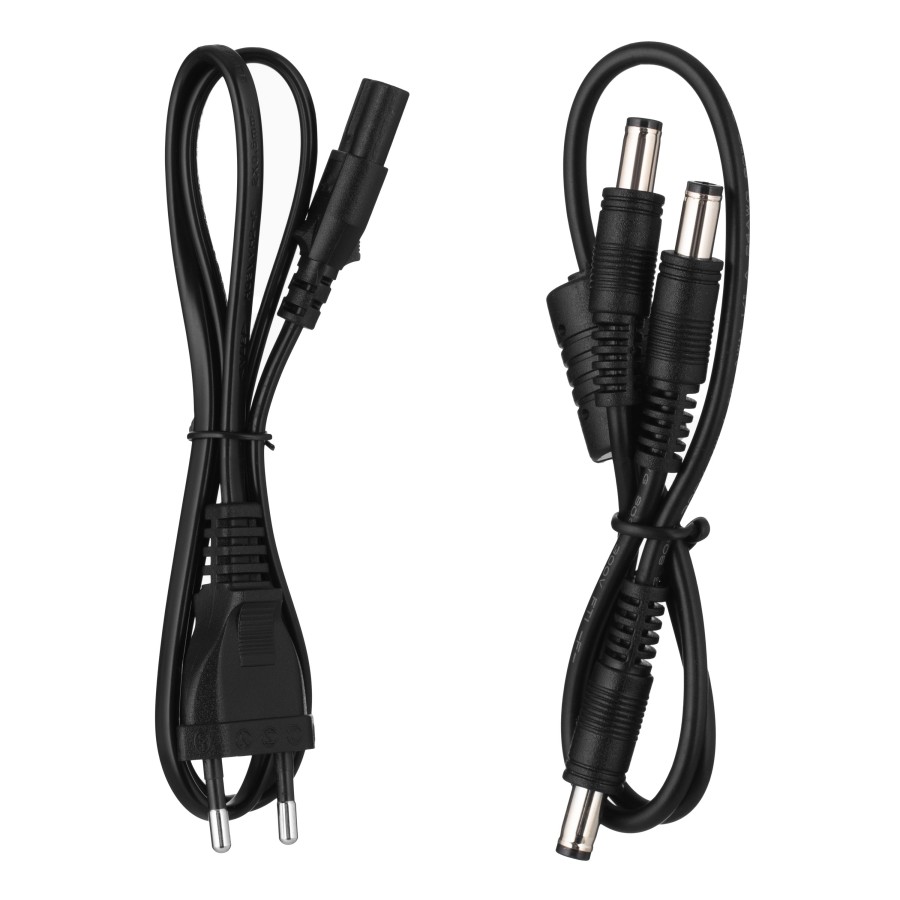У комплекті з джерелом безперебійного живлення надано всі необхідні аксесуари, включно з кабелем живлення змінного струму для під’єднання до мережі та Y-кабелем для виходу постійного струму, який дає змогу підключати пристрої до ДБЖ.