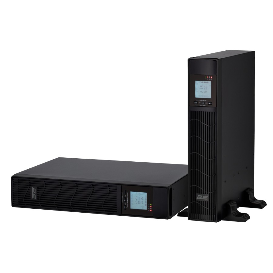 ДБЖ 2E-PS1000RT лінійно-інтерактивного типу потужністю 1000 ВА/ 800 Вт та з вбудованими АКБ. Вхід: 242-288 VАС. Вихід: 200/220/230/240 VАС ± 5%, «чиста» синусоїда. Частота становить 50/60 Гц ± 5% (автоматичне визначення). Автоматичний тест при ввімкненні. Автоматична стабілізація напруги AVR. Також ДБЖ оснащено двома батареями (12 В / 7 А·год). Зарядний струм (макс.) становить 1 А. Крім того, передбачено три розетки Schuko, розніми RJ45, USB та опціональний SNMP-адаптер. На передній панелі вбудовано LCD-дисплей, на якому відображається інформація про стан роботи пристрою, зокрема коди помилок.