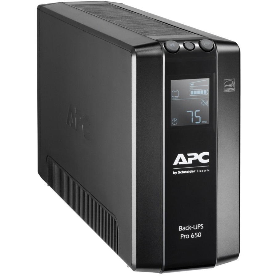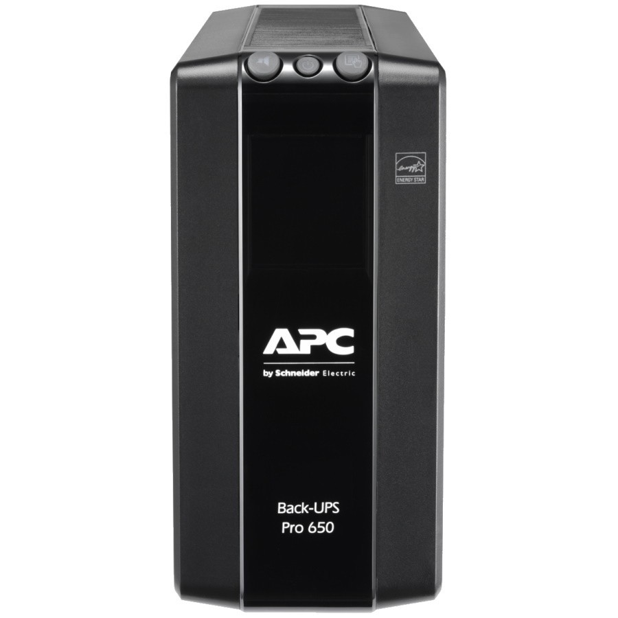 Джерело безперебійного живлення APC Back UPS Pro BR 650VA, LCD. Розетки з живленням від акумулятора і розетки тільки із захистом від небезпечних сплесків енергії в електромережі. Резервування енергоємності і часу автономної роботи для обладнання, з яким потрібно безперебійне живлення від батарей, з одночасним забезпеченням тільки захисту від сплесків напруги для менш важливого обладнання.