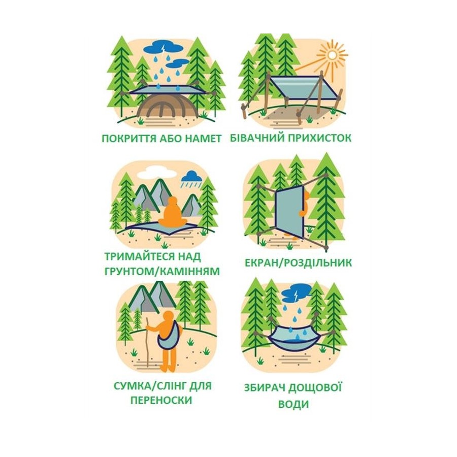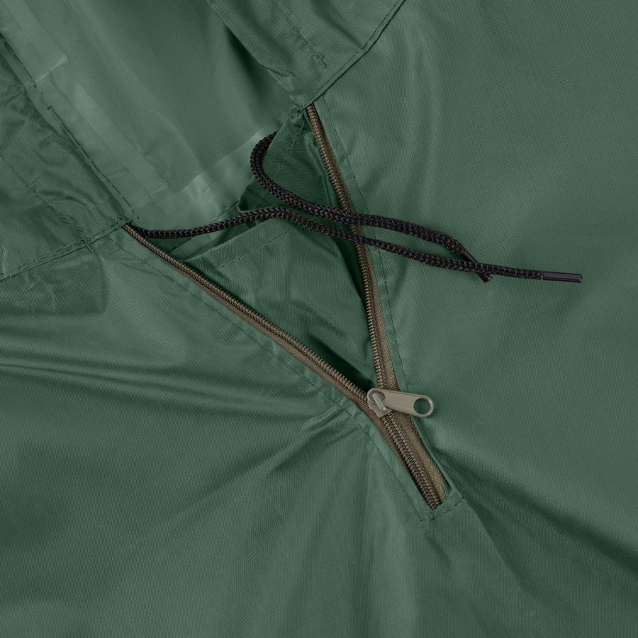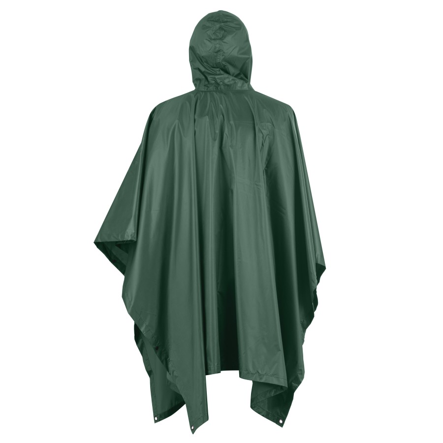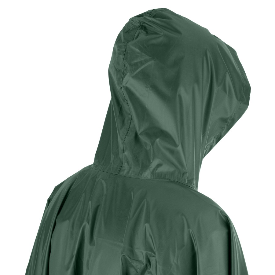 Виготовлений із поліестеру та ПВХ-матеріалу, плащ вирізняється міцністю й ефективно захищає від вологи та вітру. Його розмір становить 197 × 139 см за ваги 0,68 кг (із чохлом). Колір цієї моделі – універсальний зелений, що зумовлює практичність і придатність до використання за різних умов, навіть на фронті. Для зручності транспортування та зберігання виробу надається спеціальний чохол.
