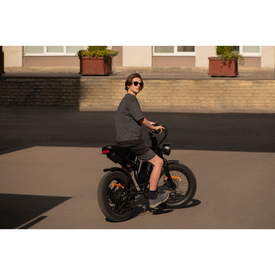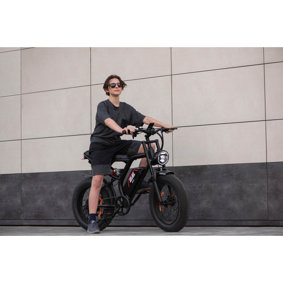 Велике зручне сидіння, а також передні й задні амортизатори, забезпечують гідний рівень комфорту під час їзди. Незалежно від того, наскільки важкою буде дорога, цей електровелосипед забезпечує максимальну зручність і плавність руху. Ємність батареї становить 15 А·год, зокрема одного заряду вистачить на поїздку дальністю до 45 км. Заряджання здійснюється через джерело електричного струму з вхідною напругою 100–240 В.