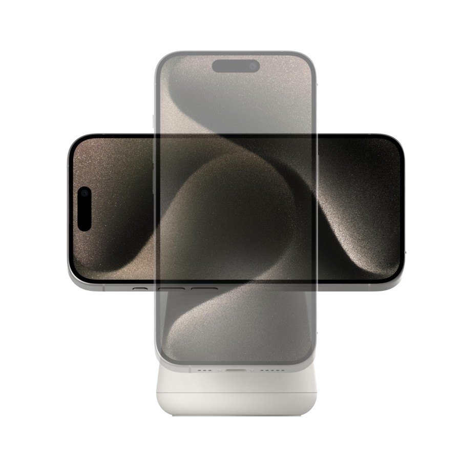 Стильна бездротова станція надає 15 Вт швидкої зарядки для iPhone, до 5 Вт для Apple Watch та для AirPods із бездротовим зарядним кейсом. Використовуючи технологію MagSafe, можете розмістити iPhone на підставці для заряджання для зручного з’єднання. Також готовий до роботи в режимі StandBy для змоги використовувати звичайний екран блокування в горизонтальному режимі.