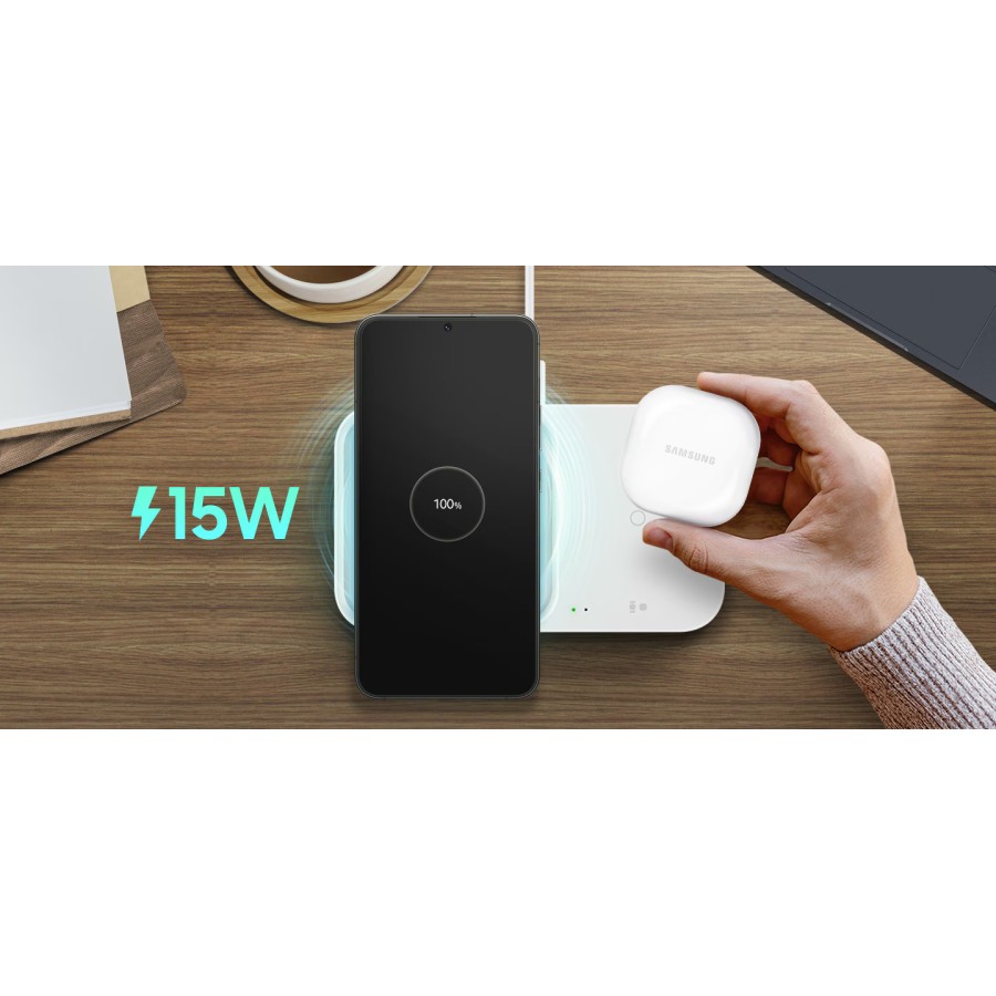 Зарядний пристрій потужністю 15 Вт — це найкращий вибір для захисту вашого пристрою Galaxy від високих температур і вологості, а також від перегрівання під час заряджання. Він також автоматично визначає, коли якісь предмети заважають заряджанню, і протестований на сумісність із пристроями Galaxy.