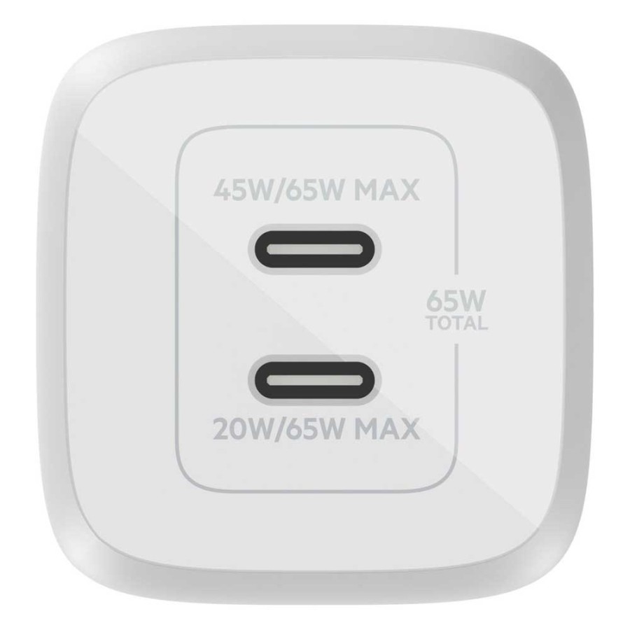 Belkin WCH013VFWH — це інноваційний мережевий зарядний пристрій, що використовує технологію GaN для забезпечення максимальної ефективності та потужності при мінімальних розмірах. Він підтримує вихідну потужність до 65 Вт, що дозволяє заряджати широкий спектр пристроїв, включаючи смартфони, планшети, ультрабуки та інші гаджети.
