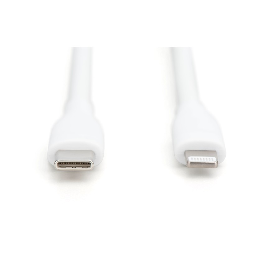 Кабель DIGITUS AK-600110-020-W призначений для швидкої синхронізації та зарядки пристроїв із роз’ємом Lightning через USB-C. Він підтримує передачу даних зі швидкістю до 480 Мбіт/с, що достатньо для регулярних задач, таких як оновлення програм чи перенесення файлів. Завдяки підтримці Power Delivery 3.0, кабель забезпечує заряджання потужністю до 60 Вт, що робить його чудовим вибором для швидкої зарядки iPhone та iPad.