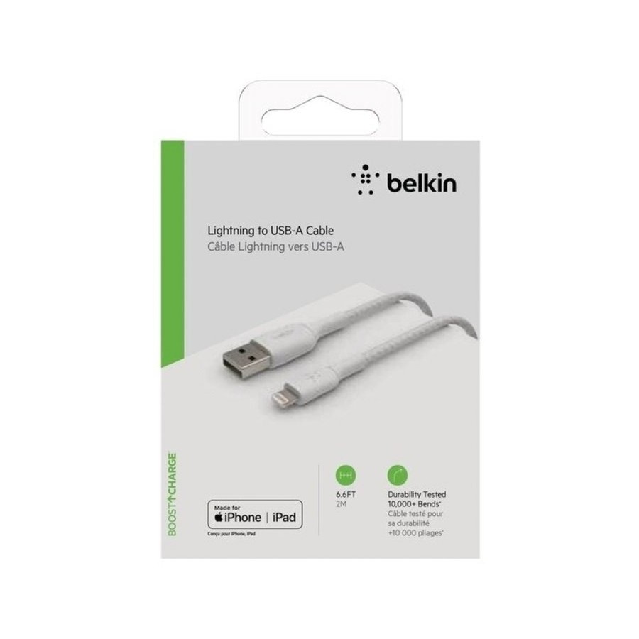 Кабель USB-A > Lightning заряджання/синхронізації Belkin 2м, 12Вт, плетений, білий (CAA002BT2MWH)