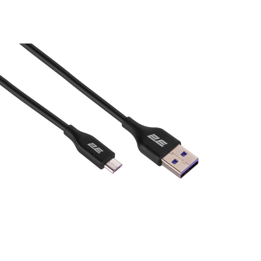 Кабель USB-A > microUSB заряджання/синхронізації 2E 1м, Glow, чорний (2E-CCAM-BL)