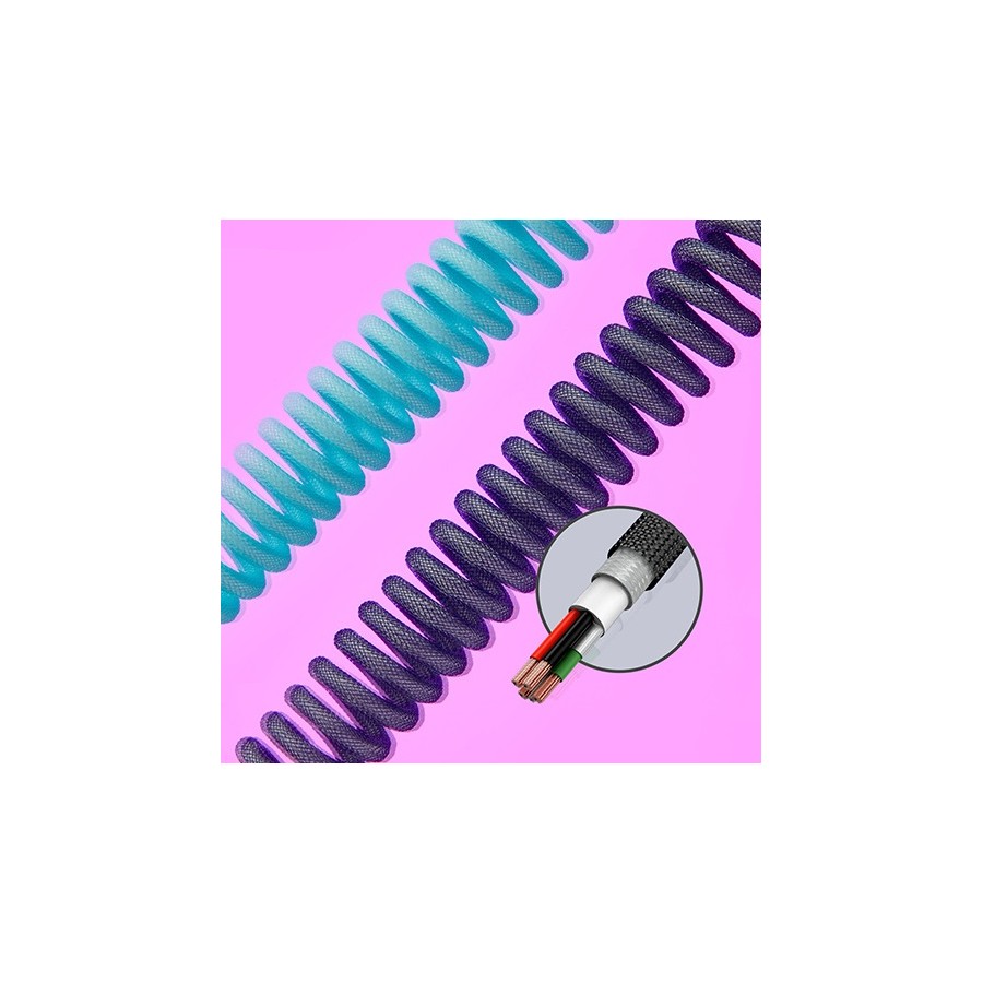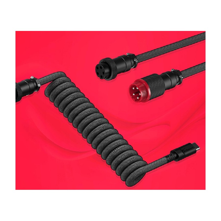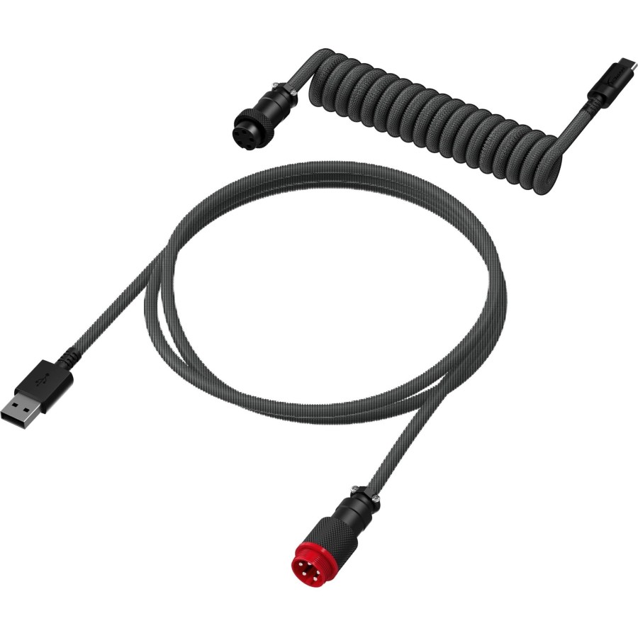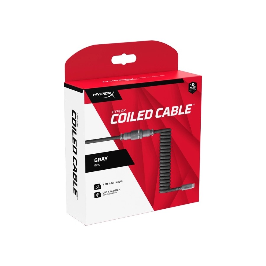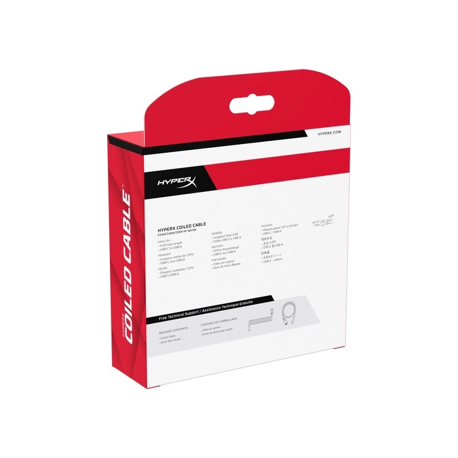 Кабель HyperX Coiled Cable використовує з'єднання USB-C з USB-A та оснащений 5-контактним авіаційним роз'ємом, що швидко від'єднується.