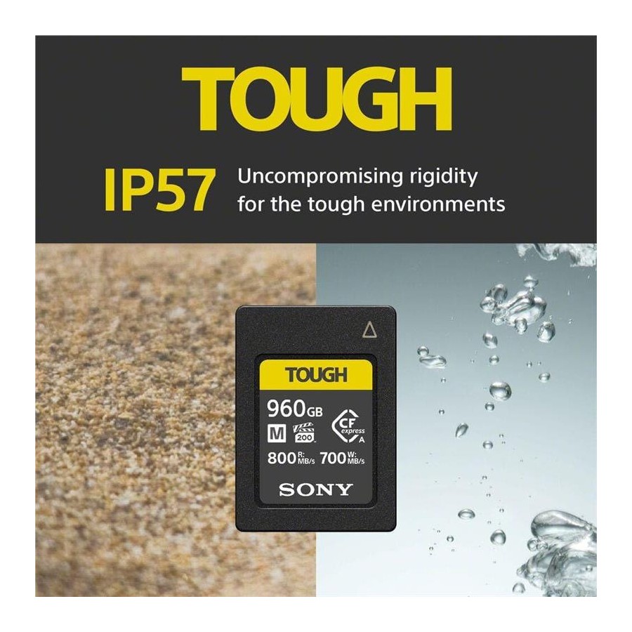 Sony CFexpress Type A 960GB Tough – це найкращий вибір для професійної фото- та відеозйомки, коли важлива максимальна швидкість, надійність та довговічність.