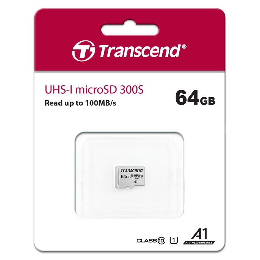 Карта пам'яті Transcend microSD 64GB C10 UHS-I R100/W20MB/s (TS64GUSD300S)