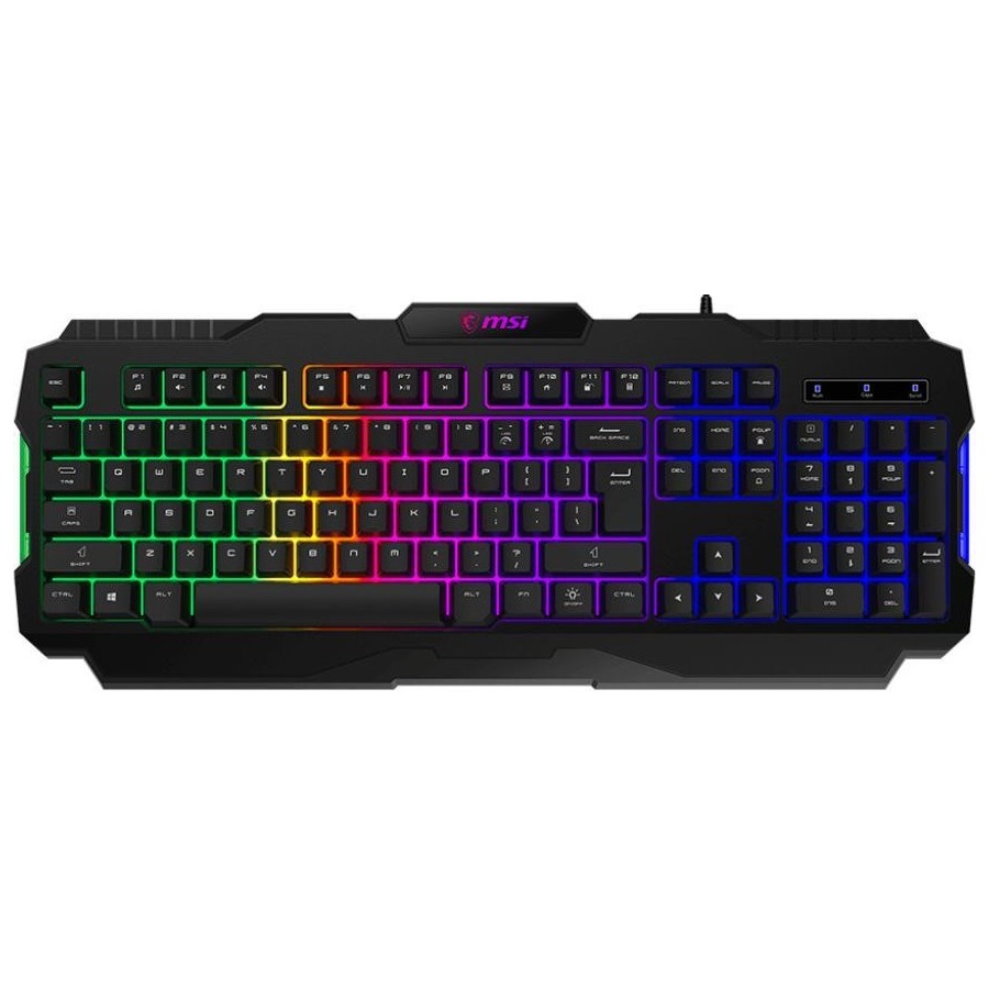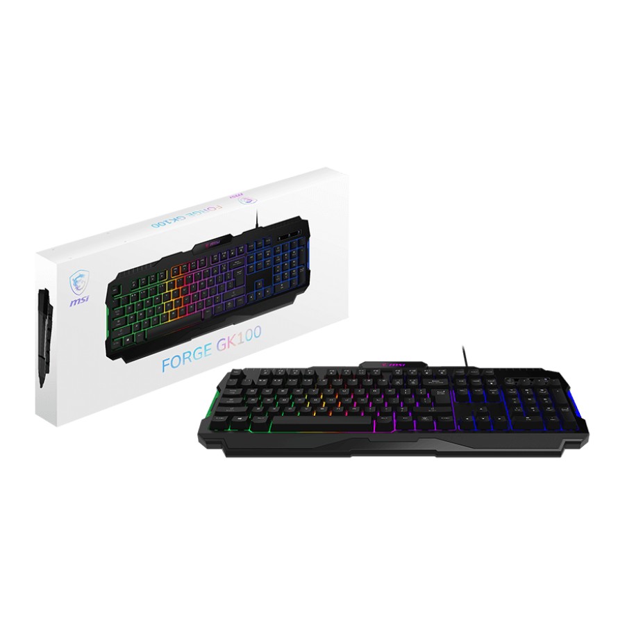 MSI FORGE GK100 поєднує в собі функціональність та стиль. Мембранна технологія забезпечує тихе та м’яке натискання клавіш, що знижує втому під час тривалого використання. Повнорозмірна розкладка на 104 клавіші включає цифровий блок, що зручно для роботи з числами та офісними програмами.