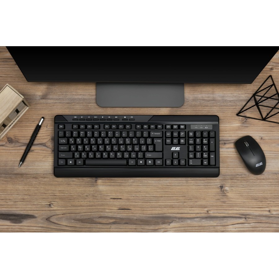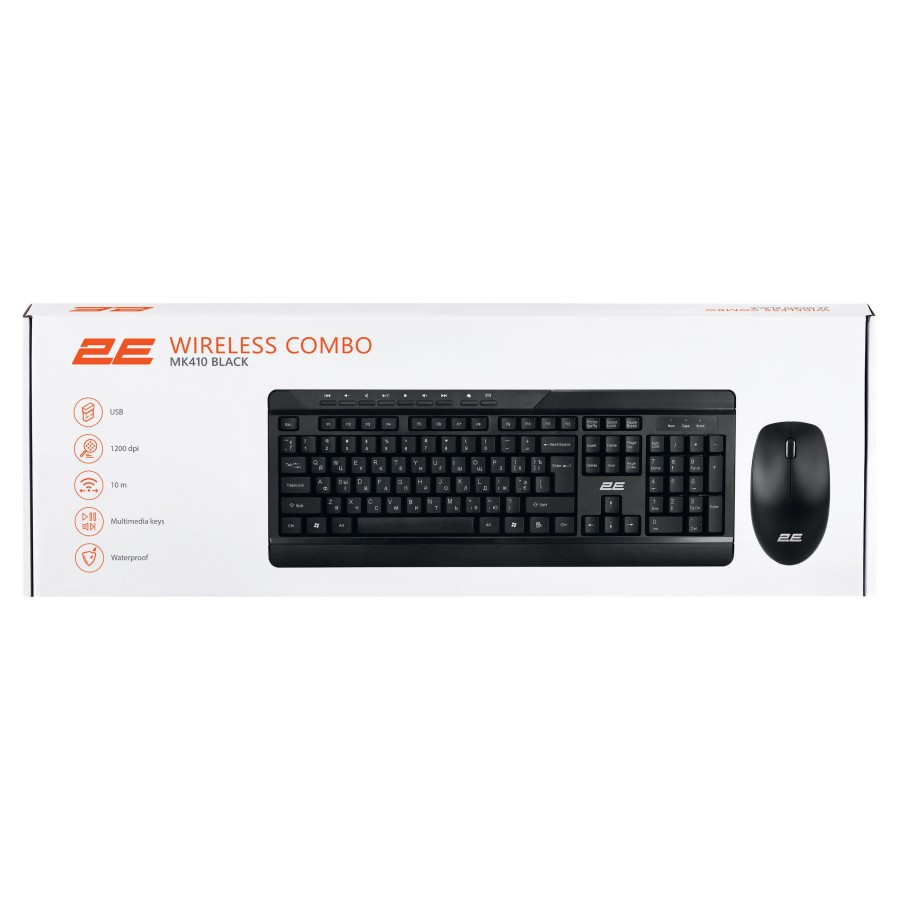 Користувачам сподобається ергономічна конструкція та додаткові клавіші для керування мультимедійними функціями. Вся лінійка клавіатур 2Е має пріоритетну українську розкладку. Українські літери знаходяться посередині низу клавіші, російські літери (як додаткові) у верхньому правому куті. В конструкції передбачено захист від випадкового проливу води.