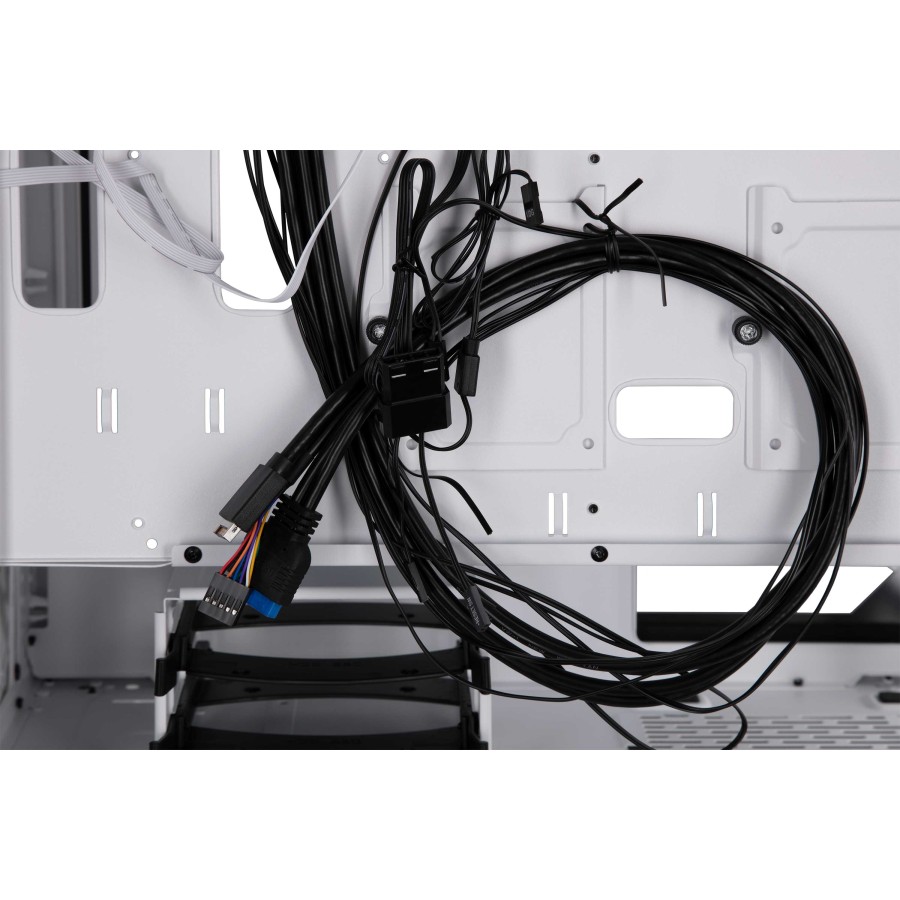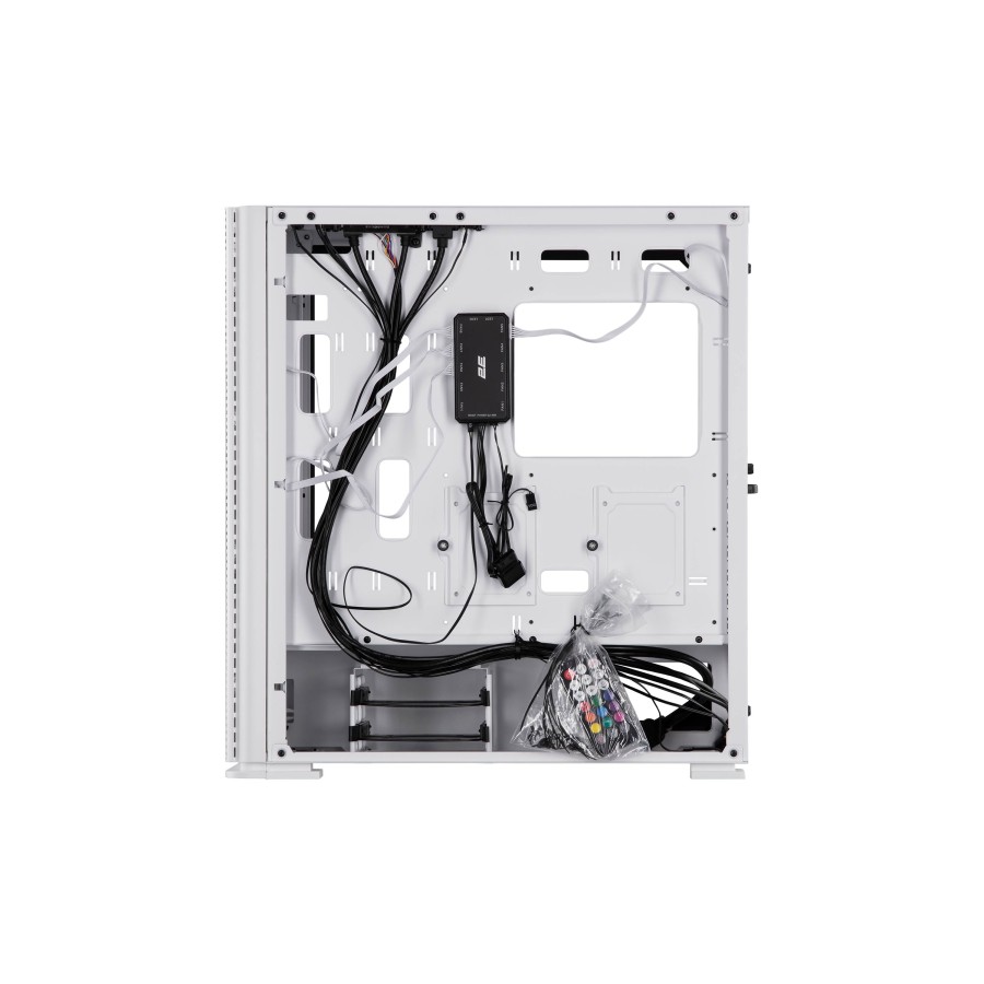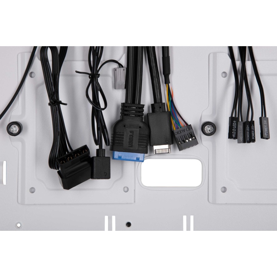 Для підключення, управління та контролю комп’ютерної периферії та підсвітки в арсеналі корпусу є сучасні роз’єми 2xUSB3.0, 1хType-C, HD AUDIO+MIC, кнопки та індикатори Power, Reset, LED, Power LED, HDD LED, додатковий контролер з дистанційним пультом управління.