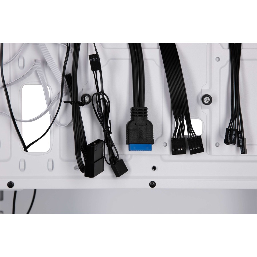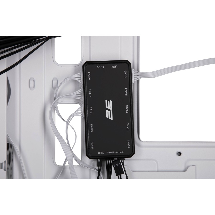 Для підключення, управління і контролю за комп'ютерною периферією і підсвіткою, в арсеналі корпусу є роз'єми 2xUSB 3.0,1xUSB 2.0 HD AUDIO+MIC, кнопки та індикатори Power, Reset, Power LED, HDD LED.