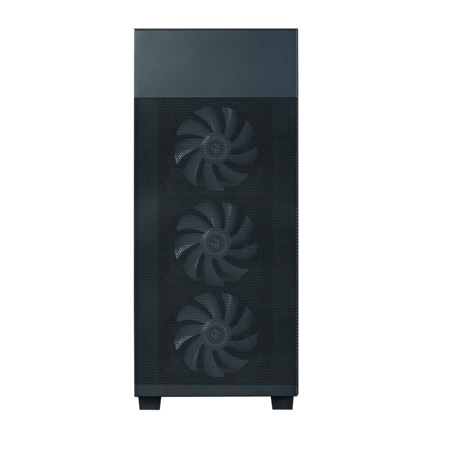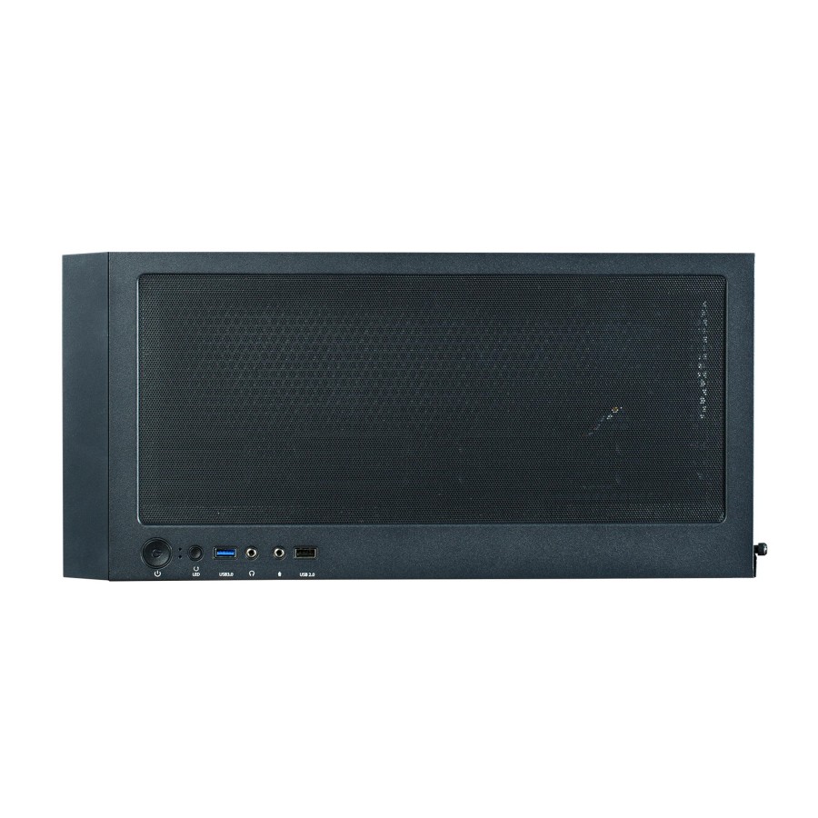 Передня панель – металева сітка для активної вентиляції, крізь яку проглядається свічення встановлених вентиляторів.