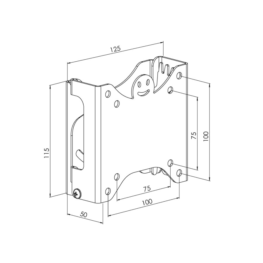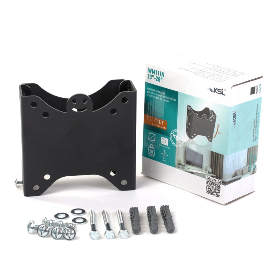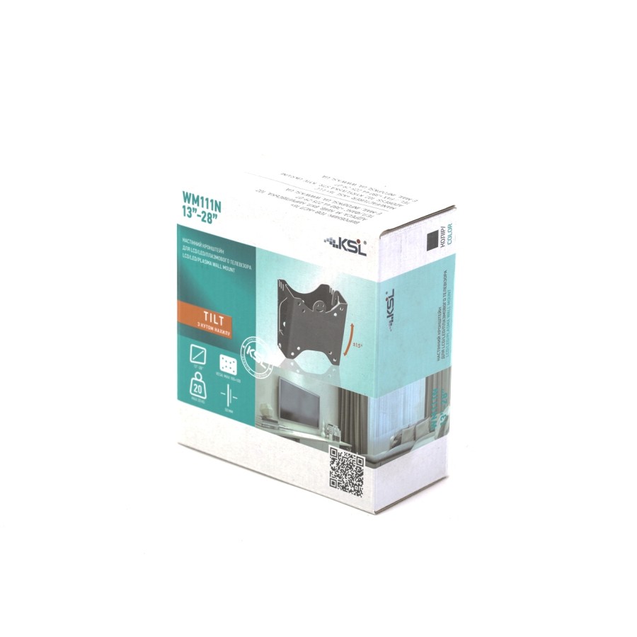 Настінний похилий кронштейн WM111N. Що потрібно знати, щоб правильно підібрати кронштейн до телевізора? Діагональ екрану, вага телевізора та стандарт кріплення VESA - відстань між кріпильними отворами на задній панелі телевізора. Всю цю інформацію ви легко знайдете в характеристиках вашого телевізора, на упаковці або в інструкції. Кронштейн підходить для плазмових, LCD, LED телевізорів і моніторів з діагоналлю 13-28 дюйма і вагою до 15 кг. Підтримуваний стандарт VESA: від 75×75 мм до 100×100 мм.