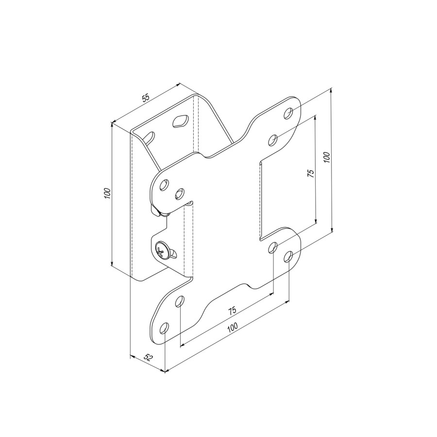 Настінний похилий кронштейн Simpler 11EN. Що потрібно знати, щоб правильно підібрати кронштейн до телевізора? Діагональ екрану, вага телевізора та стандарт кріплення VESA - відстань між кріпильними отворами на задній панелі телевізора. Всю цю інформацію ви легко знайдете в характеристиках вашого телевізора, на упаковці або в інструкції. Кронштейн підходить для плазмових, LCD, LED телевізорів і моніторів з діагоналлю 13-28 дюйма і вагою до 25 кг. Підтримуваний стандарт VESA: від 75×75 мм до 100×100 мм.