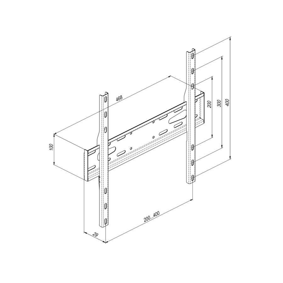 Настінний фіксованний кронштейн WMO-6240P. Що потрібно знати, щоб правильно підібрати кронштейн до телевізора? Діагональ екрану, вага телевізора та стандарт кріплення VESA - відстань між кріпильними отворами на задній панелі телевізора. Всю цю інформацію ви легко знайдете в характеристиках вашого телевізора, на упаковці або в інструкції. Кронштейн підходить для плазмових, LCD, LED телевізорів і моніторів з діагоналлю 32-65 дюйма і вагою до 30 кг. Підтримуваний стандарт VESA: від 200 × 200 мм до 400 × 400 мм.