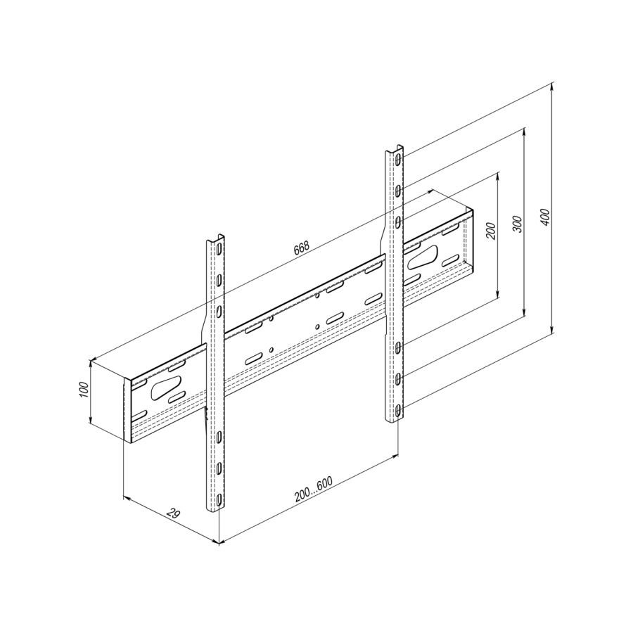 Настінний фіксованний кронштейн WMO-8260P. Що потрібно знати, щоб правильно підібрати кронштейн до телевізора? Діагональ екрану, вага телевізора та стандарт кріплення VESA - відстань між кріпильними отворами на задній панелі телевізора. Всю цю інформацію ви легко знайдете в характеристиках вашого телевізора, на упаковці або в інструкції. Кронштейн підходить для плазмових, LCD, LED телевізорів і моніторів з діагоналлю 40-80 дюйма і вагою до 35 кг. Підтримуваний стандарт VESA: від 200×200 мм до 600×400 мм.