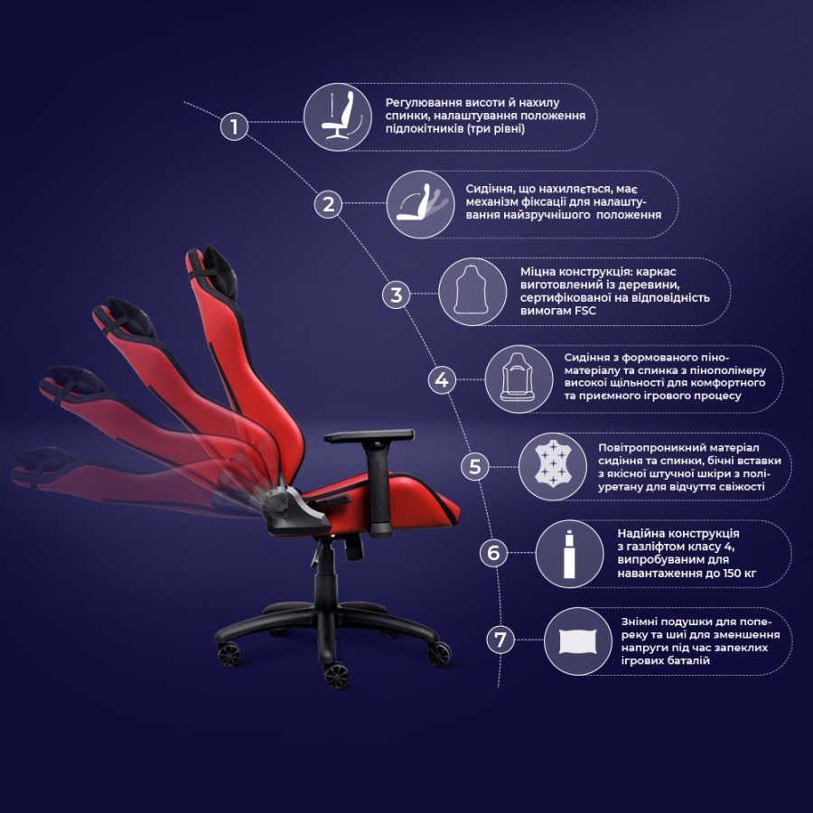 • Сидіння з формованого піноматеріалу та спинка з пінополімеру високої щільності для комфортного та приємного ігрового процесу