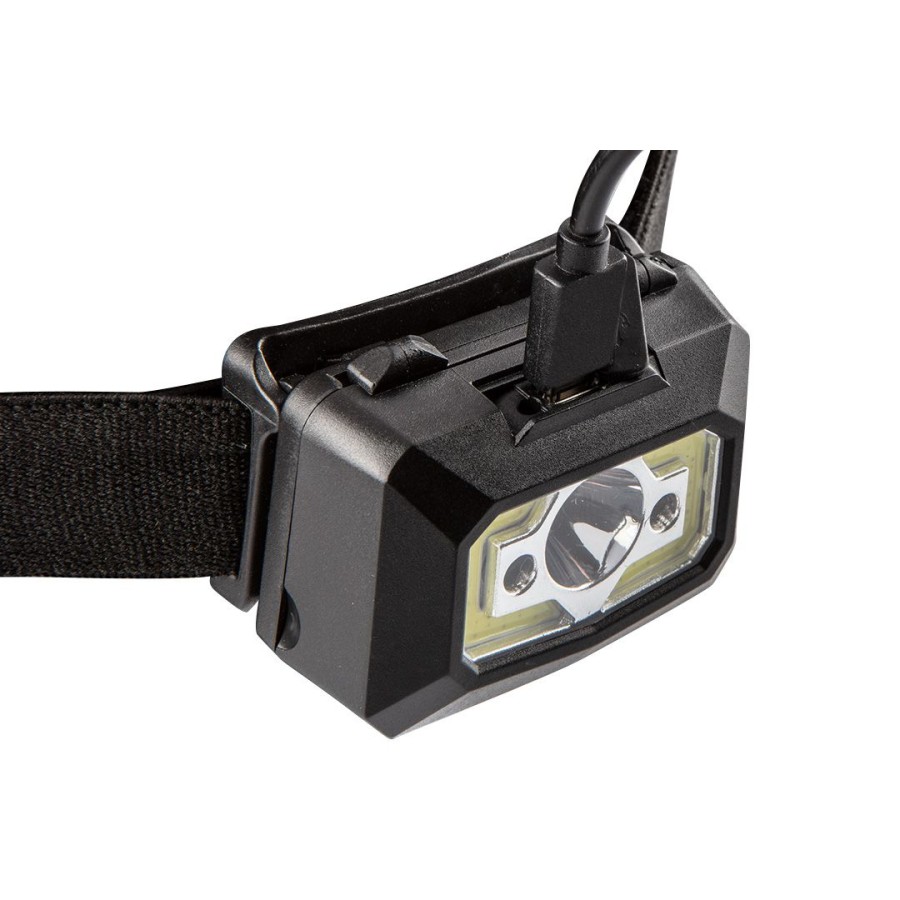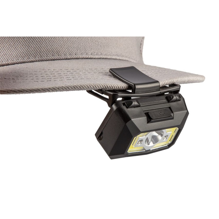 Заряджається 2,5 години, а працює протягом 4 годин. Ліхтар має вбудований індикатор зарядки акумулятора і поставляється з практичною рухомою головкою. Затискач для козирка кепки та USB-кабель входять до комплекту.