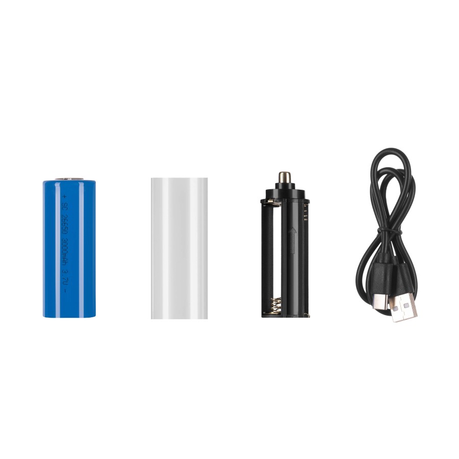 Ліхтар має зум для регулювання діаметра світлового променю та п’ять режимів освітлення: потужне, середнє, низьке, стробоскоп та SOS. Час автономної роботи: до 8 годин за слабкого світіння, до 6 годин за середнього, до 4 годин за потужного. Пристрій можна використовувати як повербанк. Ємність літій-іонного акумулятора (5 В) становить 3 000 мА·год (1 × 26 650), повністю відновлює заряд за допомогою кабелю USB Type-C впродовж 4 годин.