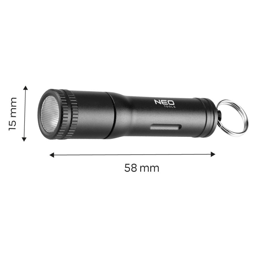 Ліхтар ручний на батарейках Neo Tools, міні, AAAх1, 100лм, алюмінієвий, 6см, 9г, IPX4 (99-068)