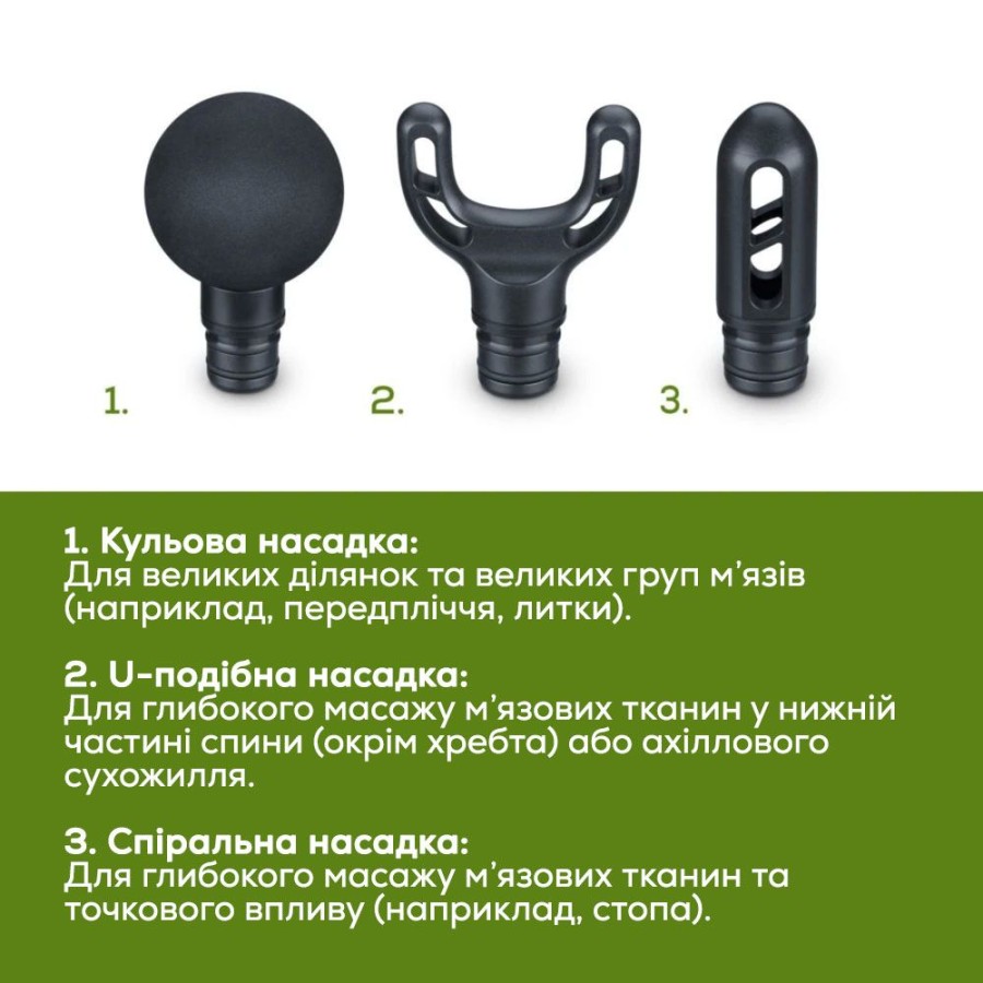 Універсальний масажний пістолет Beurer MG 89 CompactPower для активного відновлення м’язів та зняття напруги. Глибокий точковий масаж допомагає швидко зняти напругу та стимулює регенерацію після фізичних навантажень. Завдяки компактному розміру та легкій вазі ним зручно користуватися вдома, у спортзалі або в подорожах. П’ять рівнів інтенсивності дозволяють точно налаштувати силовий вплив. У комплекті три насадки для індивідуального масажу різних груп м’язів. Потужний акумулятор забезпечує до 4 годин роботи без підзарядки. Світлодіодні індикатори показують рівень заряду та вибраний режим. Must-have для щоденного масажу та швидкого відновлення.
