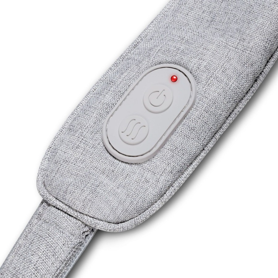 Масажер для шиї забезпечує комфортний та глибокий розминаючий масаж. Чотири масажні головки та два масажні «пальці» імітують рухи рук. Це створює ефект, як при справжньому масажі. Працює від акумулятора до 2 годин без підзарядки. Зручні ремінці для кріплення на плечах дозволяють залишати руки вільними. Ручні петлі дозволяють легко налаштувати інтенсивність масажу. Функція нагріву підсилює ефект та допомагає розслабитися. Прекрасний варіант для подарунка.