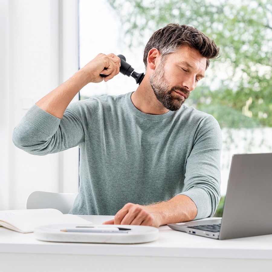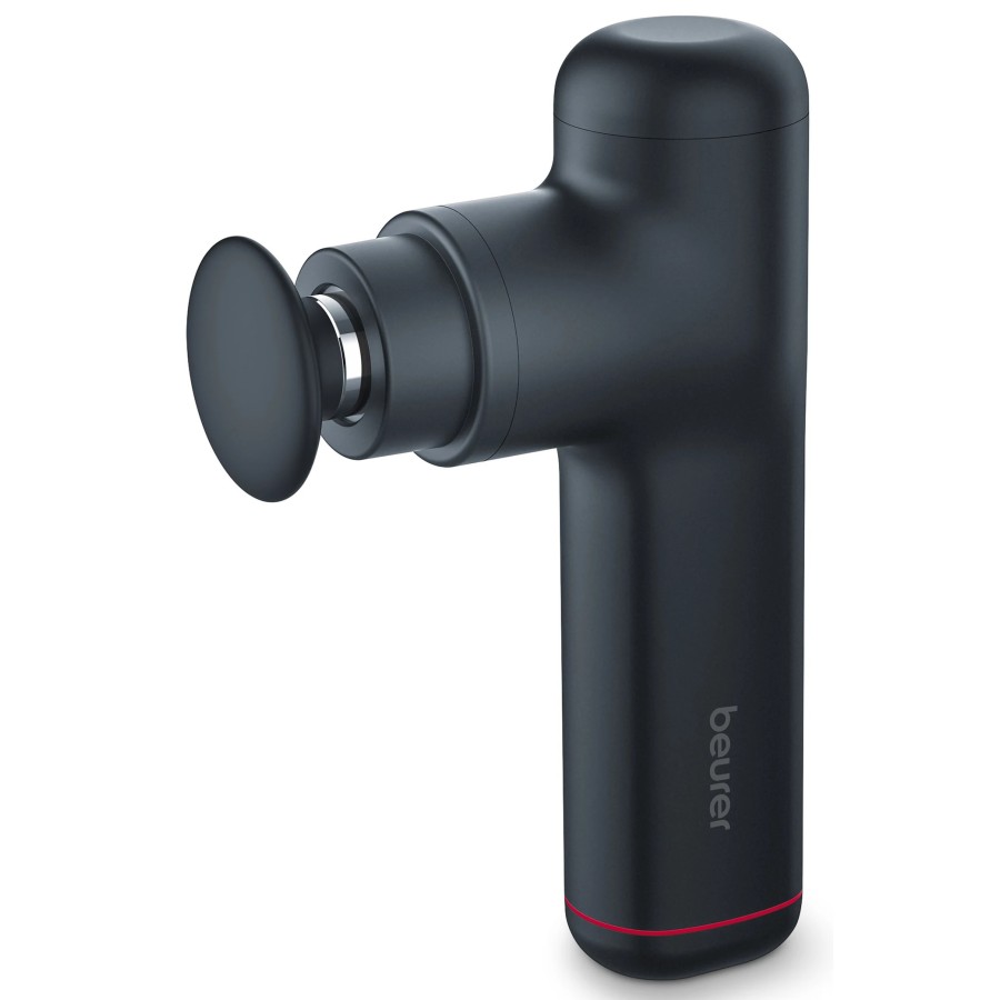 Beurer MG 79 Massage Gun дуже маленький (всього 14,7 см), але при цьому дуже потужний. Завдяки трьом рівням інтенсивності, трьом масажним насадкам і часу роботи від акумулятора до 3 годин він ідеально підходить для чутливих ділянок тіла, як-от м'язи шиї, стоп і щелепи.