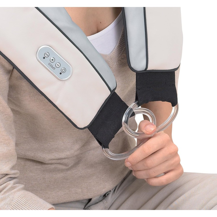 MG150 забезпечує цілеспрямований вплив на важкодоступну область плечей та шиї. Простота використання забезпечується наявністю на виробі елемента панелі керування. Ви можете вибрати одну із шести різних програм масажу, а регулятор інтенсивності дозволяє вибрати саме той вид масажу, який вам необхідний. Можливе застосування без рук, а для особливо глибокого масажу ручки можна тримати однією або двома руками.