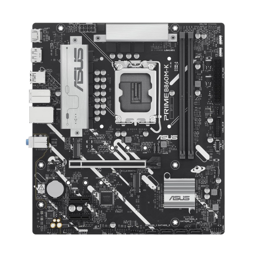 Материнська плата PRIME B860M-K оснащена декількома вбудованими радіаторами та набором гібридних вентиляторів, щоб забезпечити стабільну роботу вашої системи під час інтенсивних навантажень.