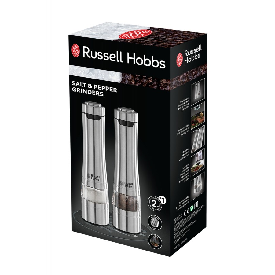 Корпус млина виконаний з нержавіючої сталі. Цей матеріал не піддається зовнішнім змінам протягом тривалого часу експлуатації. Покриття зберігає свою яскравість, гладкість та металевий колір. Також є невелика вставка, виконана з міцного, прозорого скла. Користувач зможе відразу побачити, що всередині ємності. Розмір млина складає 23.3 x 6 см. Він практичний, універсальний і компактний. Функціонує млин при використанні 4 AA батарейок (продаються окремо).