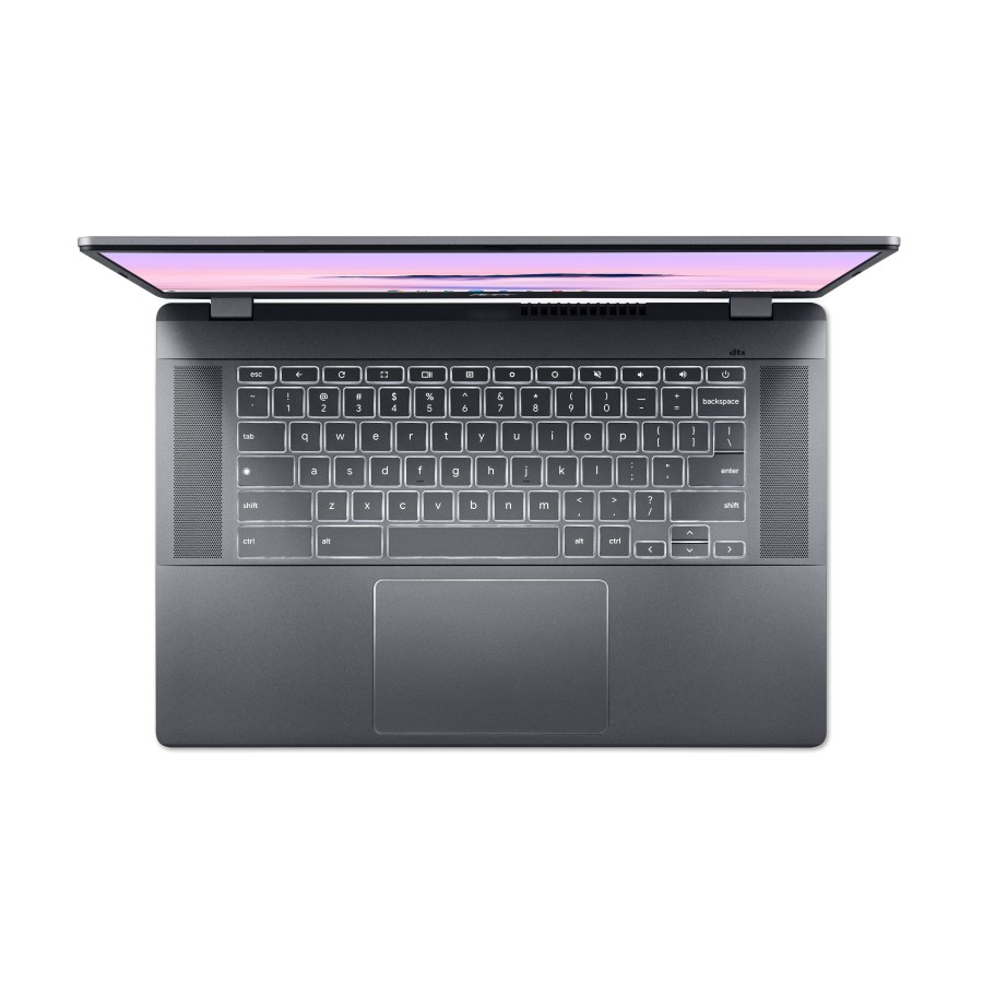 DTS® аудіо та акумулятор зі швидким заряджанням з 10 годинами автономної роботи6 роблять 15-дюймовий Chromebook Plus ідеальним для розваг у дорозі. Візьміть його з собою практично будь-куди навіть без адаптера та насолоджуйтесь високоякісним звуком із двох спрямованих угору динаміків.