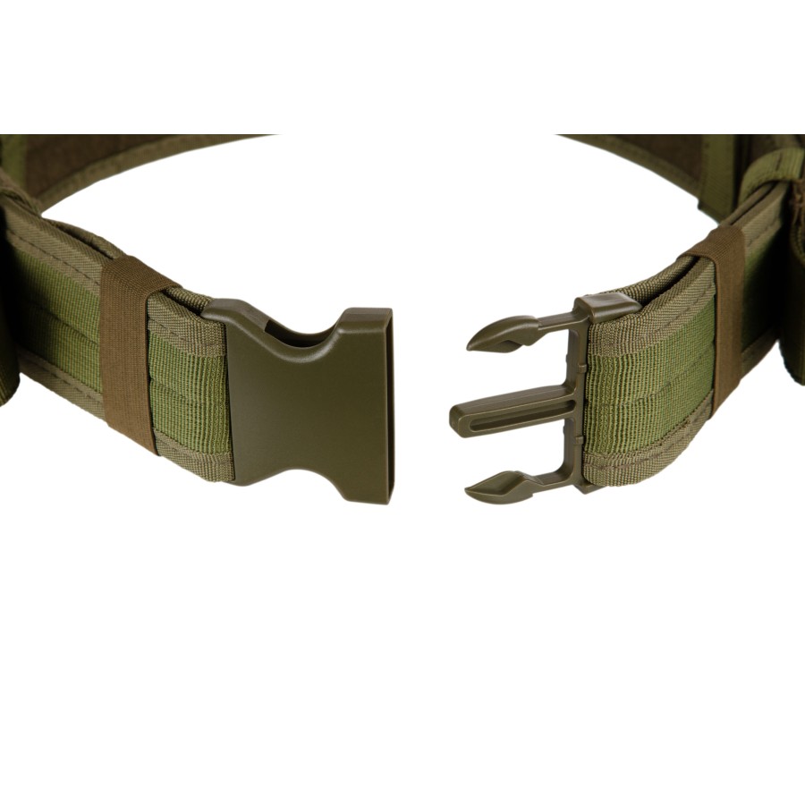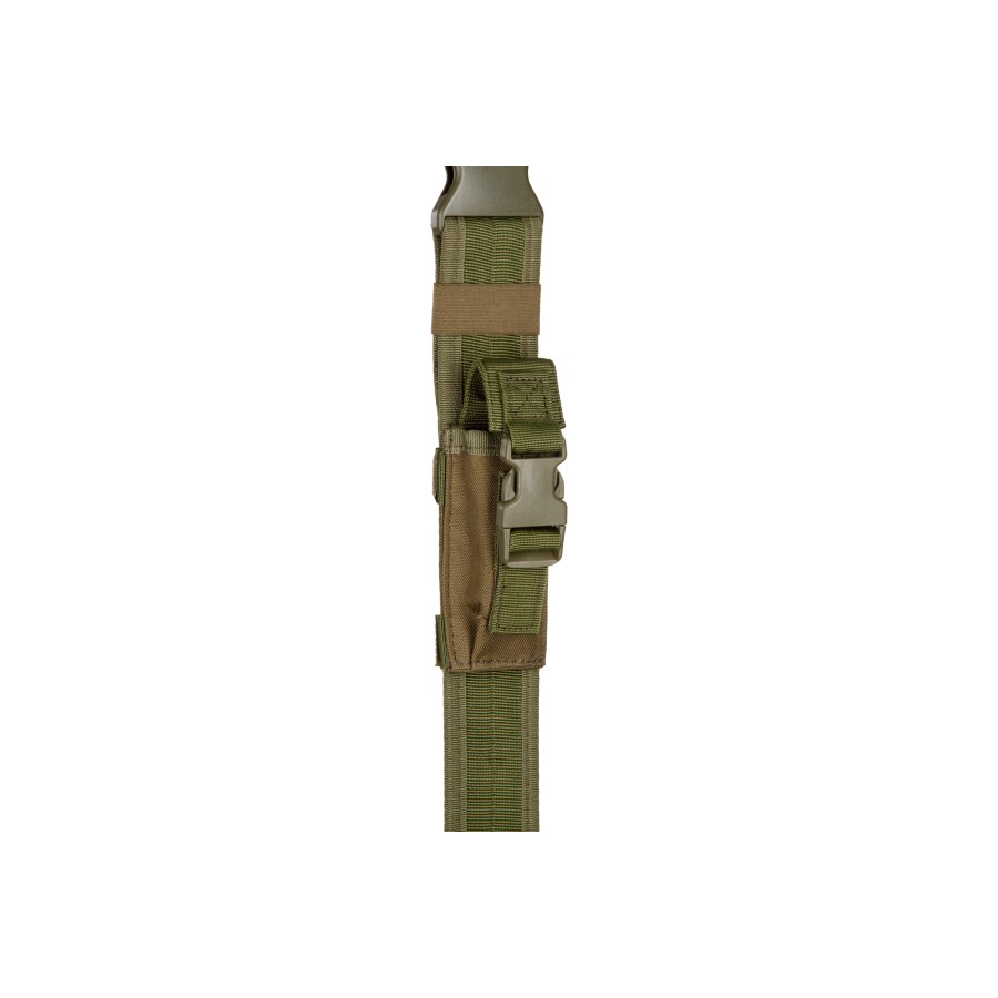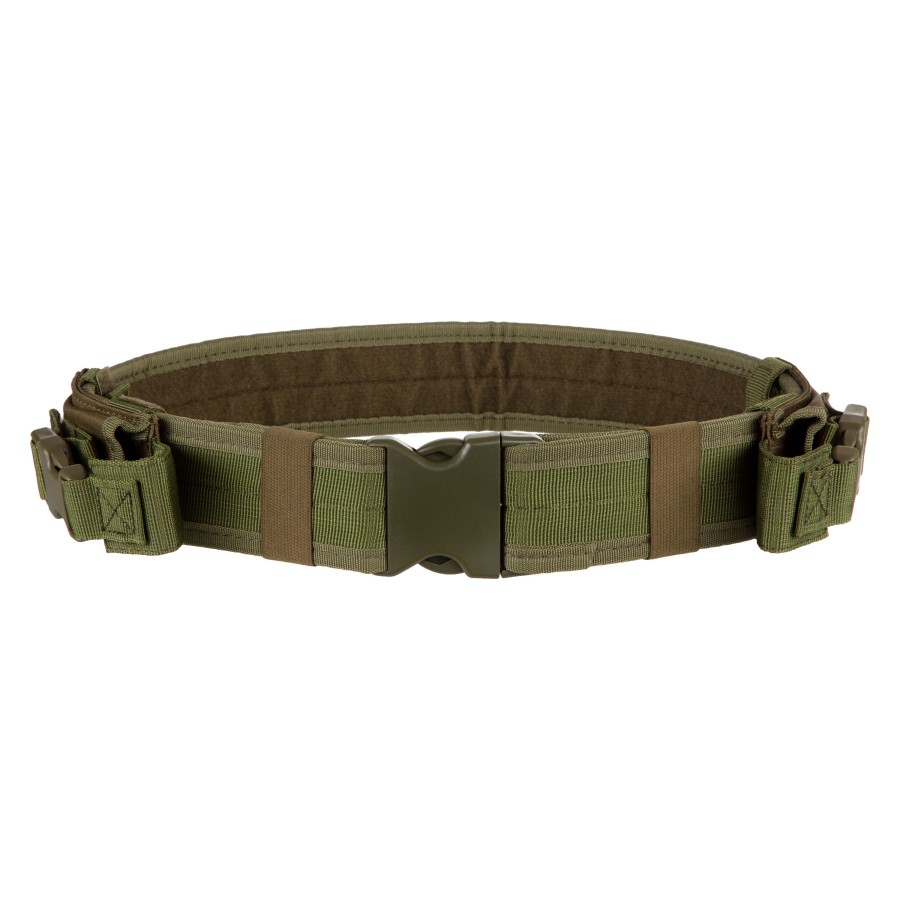 Тактичний ремінь, виготовлений у зеленому кольорі (OD Green), має продуману конструкцію, завдяки чому надійно фіксується, запобігаючи довільному прокручуванню. Ремінь є багатофункціональним: оснащений двома кріпленнями/чохлами на застібці Velcro, до яких можна покласти невеликий ніж чи мультитул. Розмір чохлів становить 14 × 6 × 5 см. Також передбачено можливість прикріпити додаткове навісне спорядження чи елементи розвантажувальних систем. Крім іншого, у разі потреби виріб можна використовувати як рятувальний ремінь чи джгут для перев’язки, адже він має достатню для цього довжину (123 см). Невелика вага (0,24 кг) жодним чином не позначається на експлуатаційних властивостях моделі.