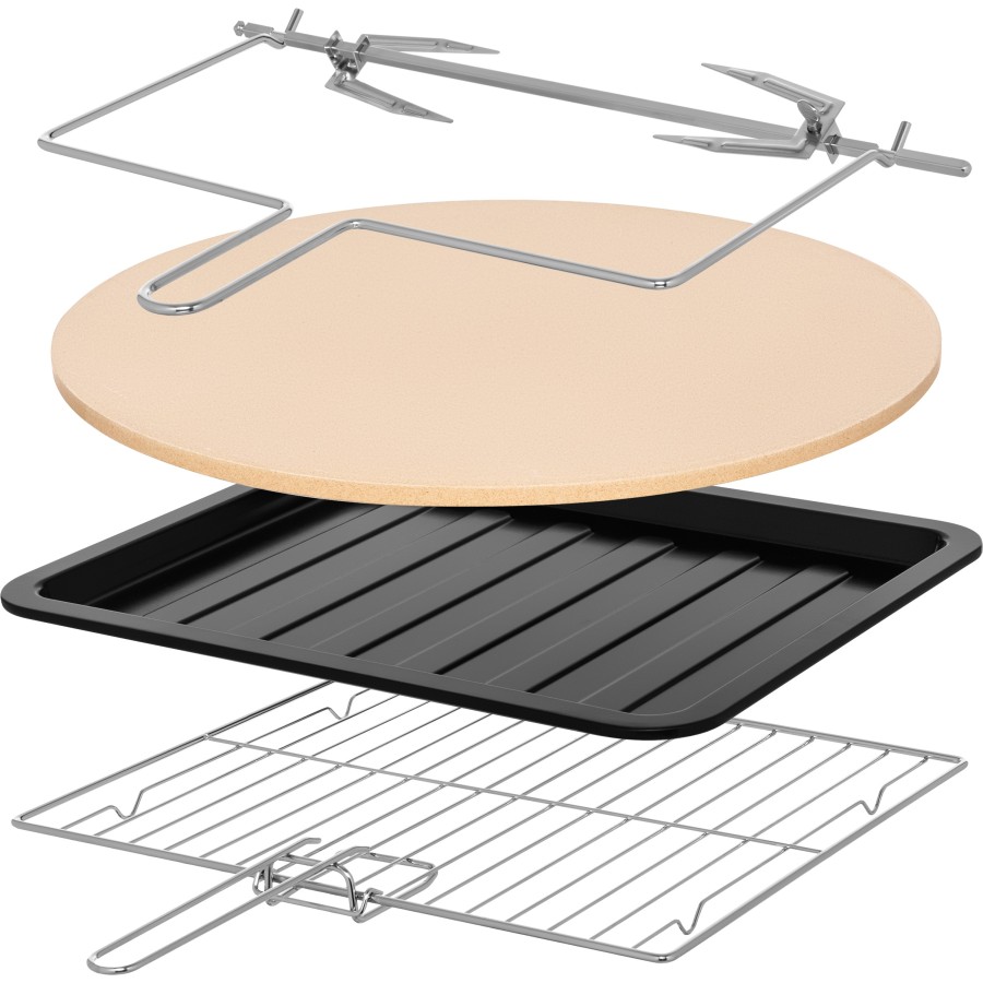 Електрична піч об'ємом 5 літрів та потужністю 1700 Вт. Оснащена регульованим контролем температури: 30-230 ° C і таймером на 150 хвилин зі звуковим сигналом та автоматичним вимкненням. 9 встановлених режимів приготування: розігрів/розморожування/курка/гриль/піца/тости/торт/печиво/картопля