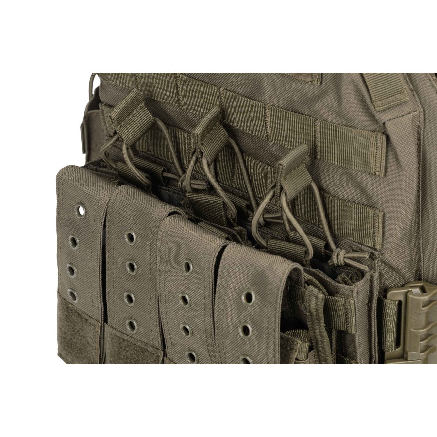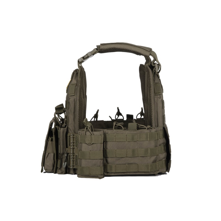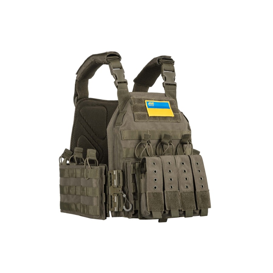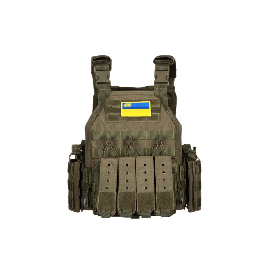 Плитоноска 2Е Tactical Combat у кольорі OD Green виготовлена з якісних і стійких до зношування матеріалів: нейлону й поліестеру 1 000 DEN. Модель має невелику вагу (2,2 кг), оснащена системою швидкого скидання. У комплекті до виробу передбачено 9 тримачів для магазинів АК-74, зокрема підсумок із чотирма відділеннями для додаткового спорядження фіксується спереду стропами Molle поверх підсумка з магазинами для АК-74. Також є два універсальні підсумки з кріпленням Molle розміром 18 × 14 × 2 см, які вшито з обох боків: ці відділення згодяться для розміщення балістичних плит розміром 16 × 13 × 2 см, що дає змогу одночасно використовувати і магазини, і плити. Ще один підсумок для трьох магазинів АК-74 (або інших, сумісних за розміром) інтегровано на фронтальній поверхні, а два додаткові еластичні знімні (з кріпленням Molle) для одного магазина за потреби можна вчепити на кожному боці. Ця плитоноска є оптимальним рішенням для тактичних завдань, де важлива мобільність, адаптивність і висока захисна функціональність.