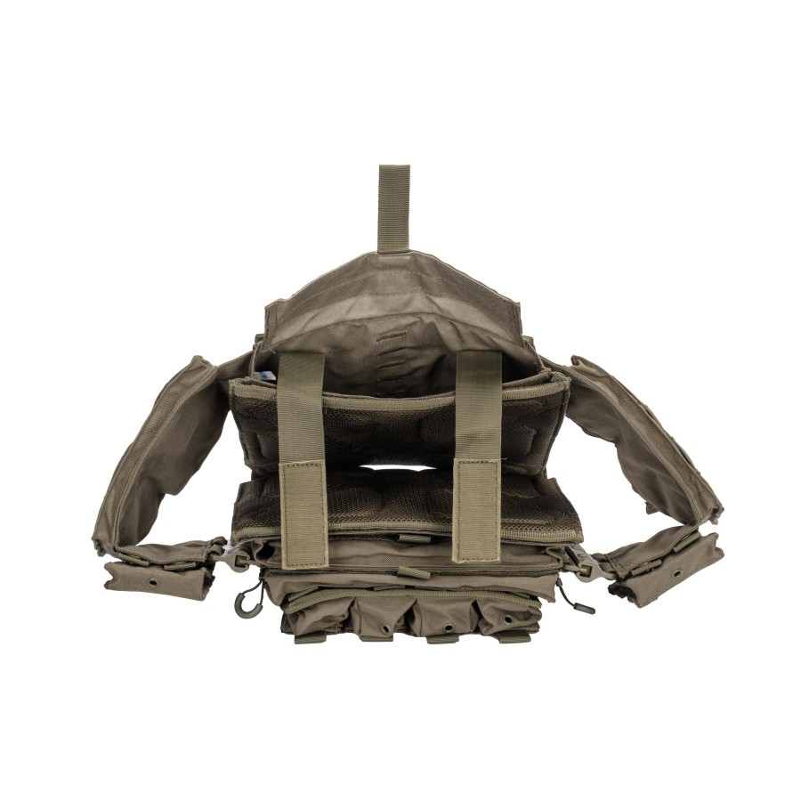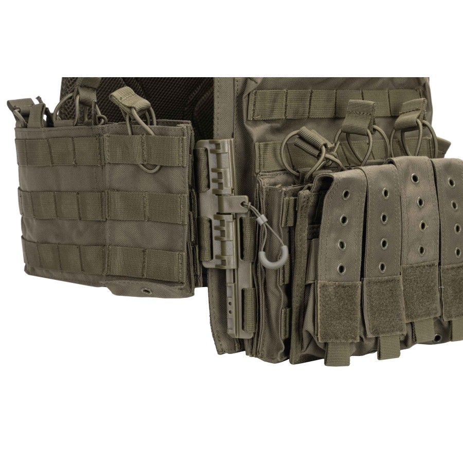 Виріб оснащений кріпленнями MOLLE – рядами нейлонових строп. Така система з’єднання та компонування спорядження між собою використовується сучасними збройними силами НАТО, зокрема армією США. По суті, вона дає змогу зручно фіксувати, знімати й переставляти підсумки для магазинів, засобів навігації і зв’язку та інше військове спорядження і аксесуари, переплітаючи між собою стропи.
