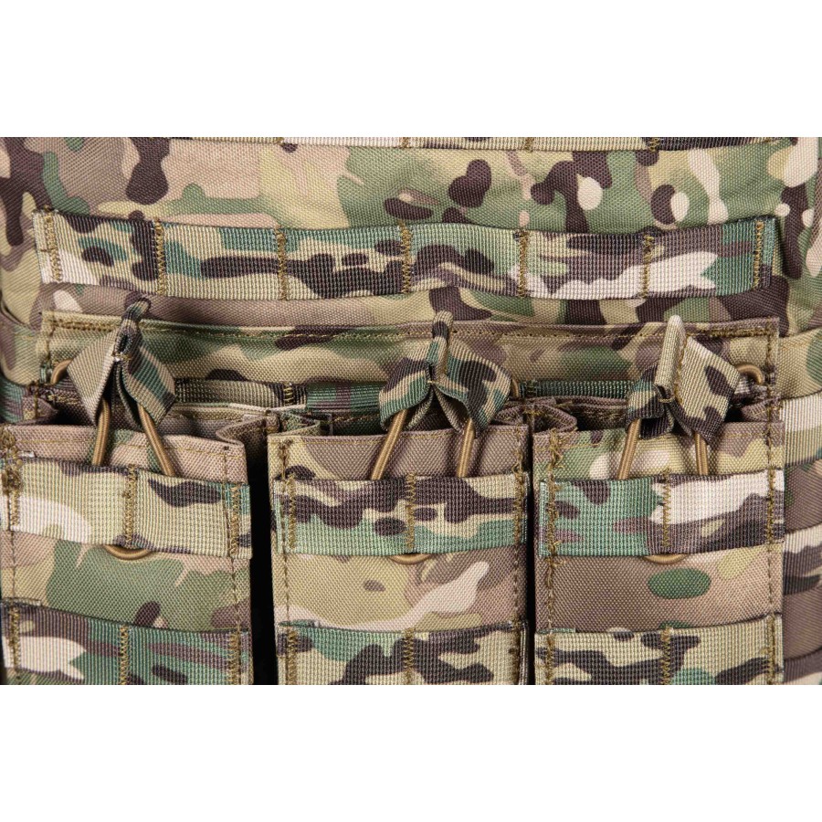 Виріб оснащений кріпленнями MOLLE – рядами нейлонових строп. Така система з’єднання та компонування спорядження між собою використовується сучасними збройними силами НАТО, зокрема армією США. По суті, вона дає змогу зручно фіксувати, знімати й переставляти підсумки для магазинів, засобів навігації і зв’язку та інше військове спорядження і аксесуари, переплітаючи між собою стропи.