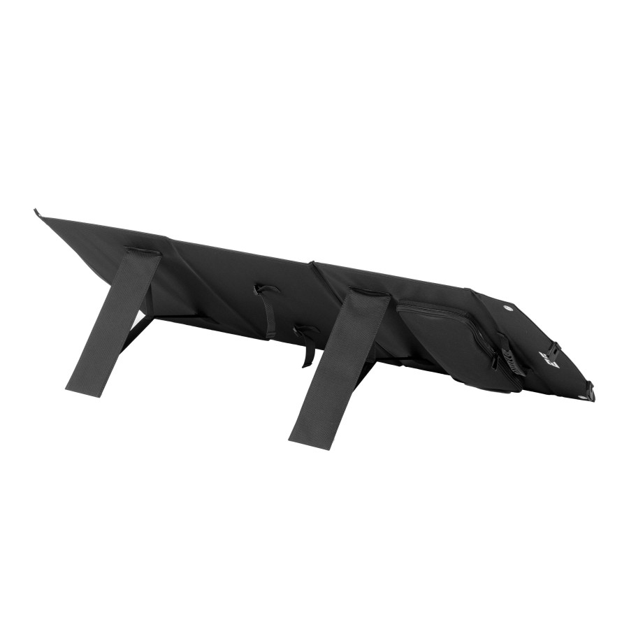Панель 2E-LSFC-100 підключається до електростанції через наявний у комплекті кабель та різноманітні перехідники. 2E-LSFC-100 оснащено вихідними рознімами USB-A (24 Вт), USB-C (45 Вт) та портом DC 18 В/5,5 A, 100 Вт (макс.), завдяки яким можна під’єднати майже будь-який пристрій. Модель має габарити 390 × 540 × 45 мм і важить 3,9 кг, та попри це залишається мобільною, адже має складану конструкцію та спеціальне руків’я для зручного транспортування. У розгорнутому стані панель має більший розмір – 1 345 × 540 × 25 мм.