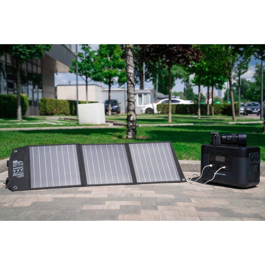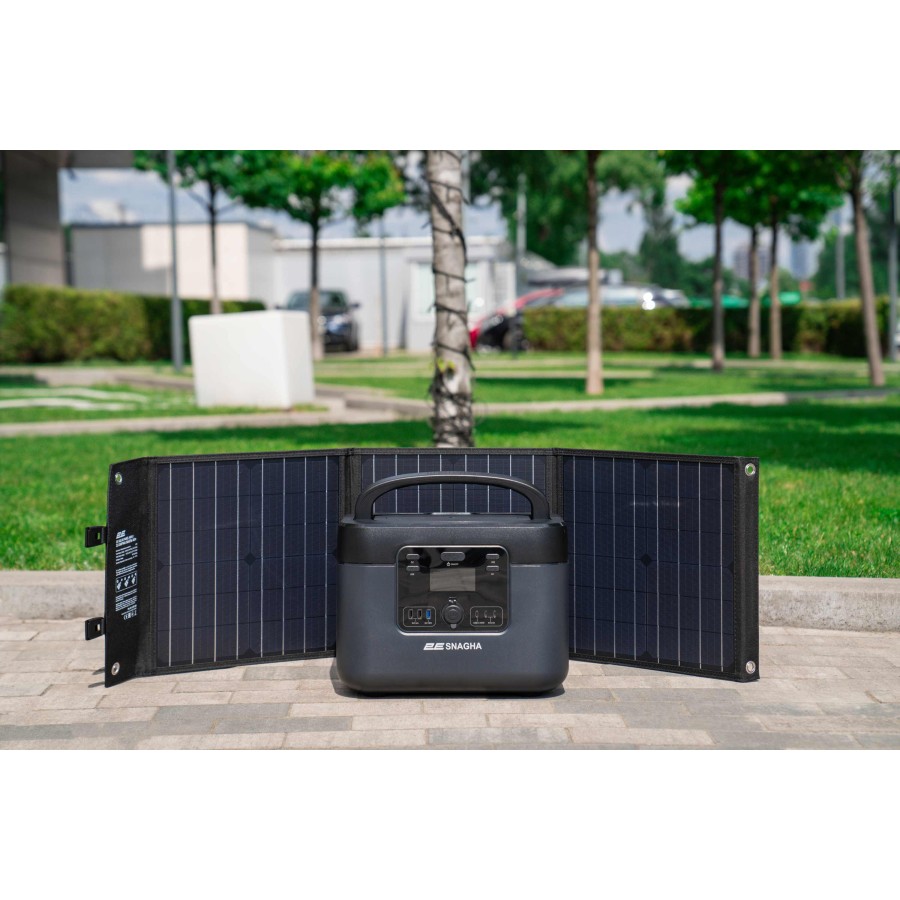 Портативна сонячна панель 2Е дасть змогу швидко відновити заряд не тільки портативних електростанцій, а й практично будь-яких USB-пристроїв. Це можливо завдяки продуманому інтерфейсу, зокрема порту DC 18 В/3,3 A, 60 Вт (макс.) для підключення до електростанцій, а також рознімам USB-A (24 Вт) і USB-C (18 Вт) для заряджання сумісних пристроїв. Модель 2E-LSFC-60 має сумарну потужність 60 Вт і коефіцієнт конверсії ≥20 %. Її особливістю є складана конструкція та наявність руків’я для зручного транспортування. За ваги 2,65 кг складена сонячна панель має габарити 364 × 365 × 45 мм, з огляду на це пристрій по праву можна назвати мобільним.