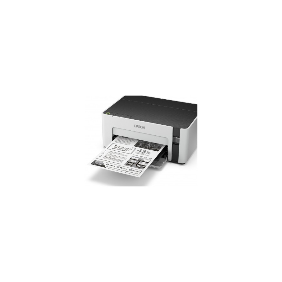 Монохромний принтер Epson М1100 - це компактний і зручний у використанні струменевий принтер з великими ємностями для чорнила об'ємом 120 мл. замість картриджів. Завдяки своїй унікальній конструкції Epson M1100 дозволяє друкувати документи з рекордно низькою собівартістю, а за рахунок використання пігментних чорнил відбитки миттєво висихають і не розмазуються при попаданні води або механічного впливу.