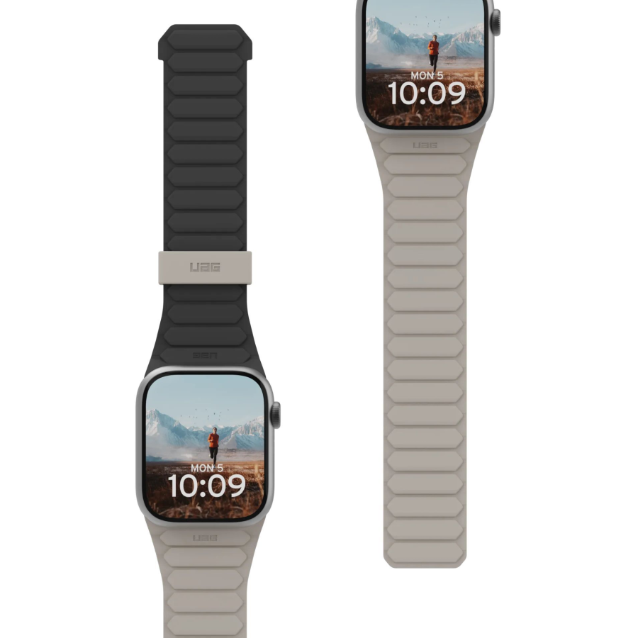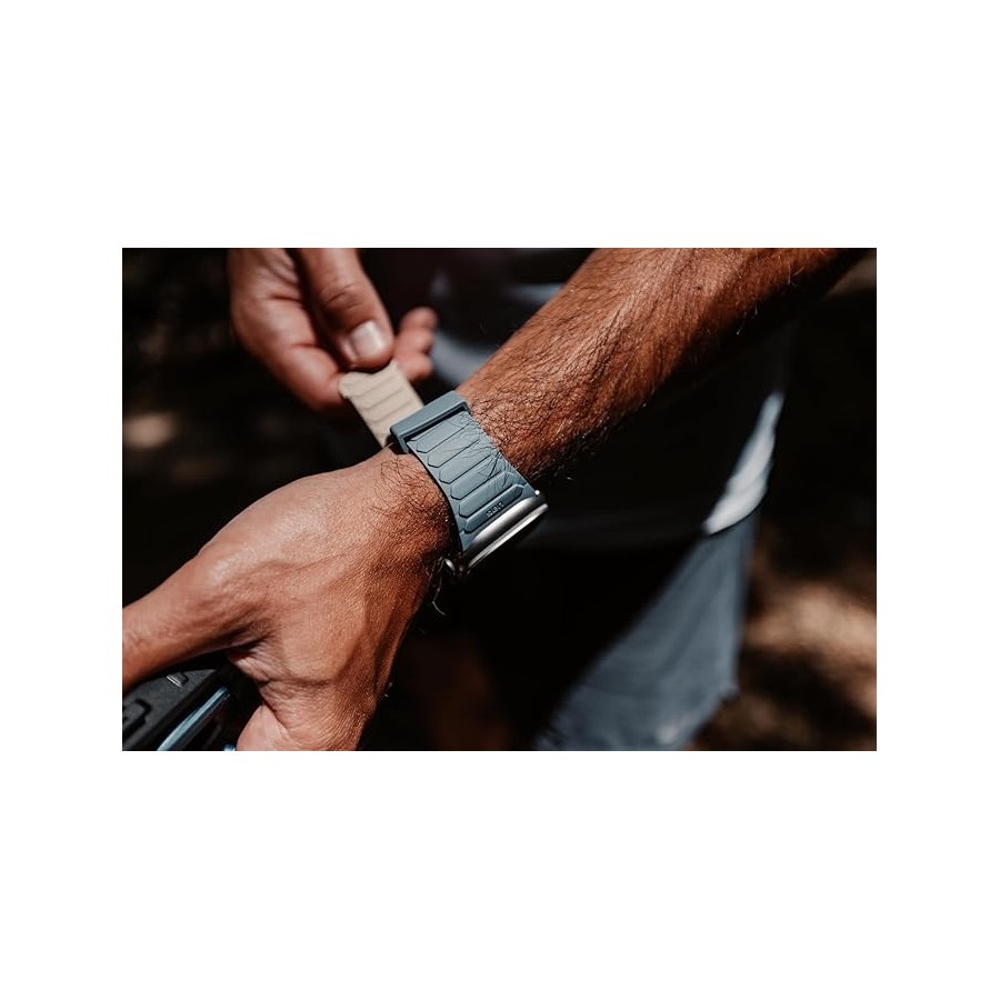 Фіксатор і петля забезпечують надійну безпеку вашого розумного годинника. Комбінація силікону з м'яким на дотик покриттям і магнітного замка забезпечує винятковий комфорт протягом усього дня та уникає точок тиску, характерних для традиційних застібок. Доповніть будь-який образ стильним і реверсивним двоколірним дизайном.