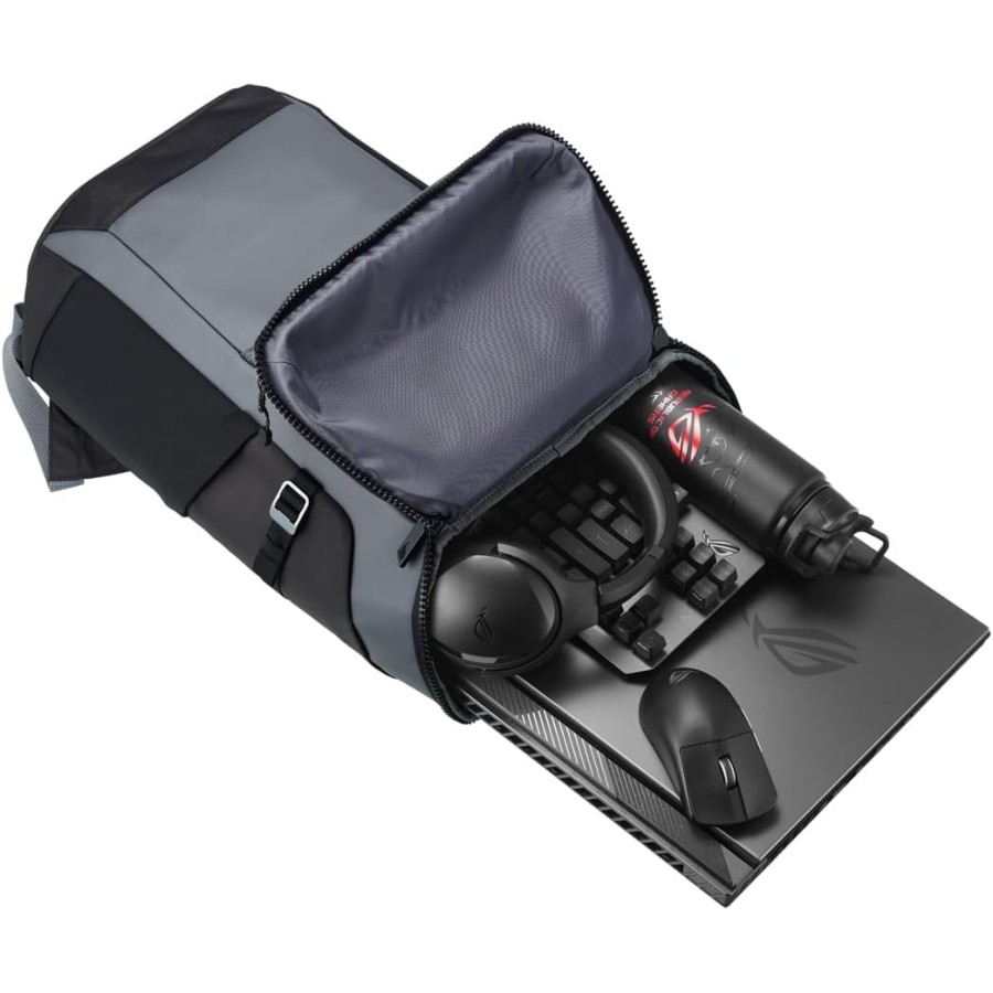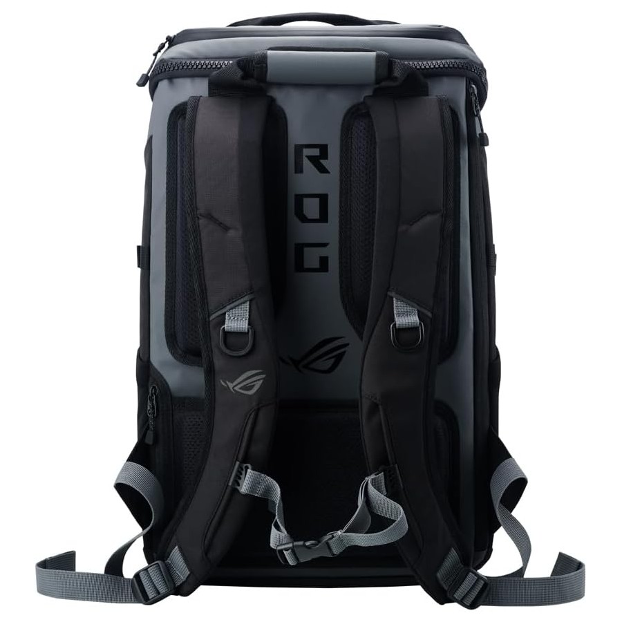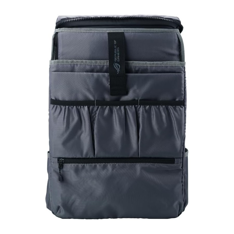 Рюкзак має продумане компонування: велике основне відділення для ноутбука, додаткові кишені для аксесуарів та органайзери для дрібних речей. Його дизайн поєднує елегантність і агресивний стиль серії Republic of Gamers, що робить його ідеальним вибором для шанувальників бренду ASUS ROG.