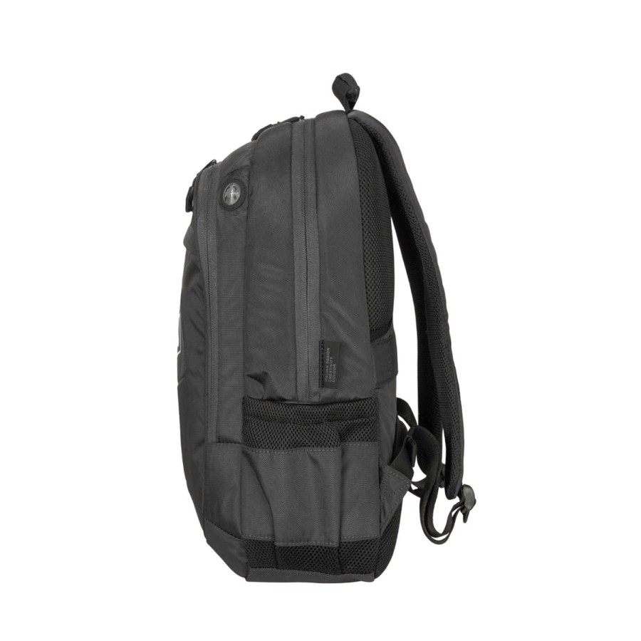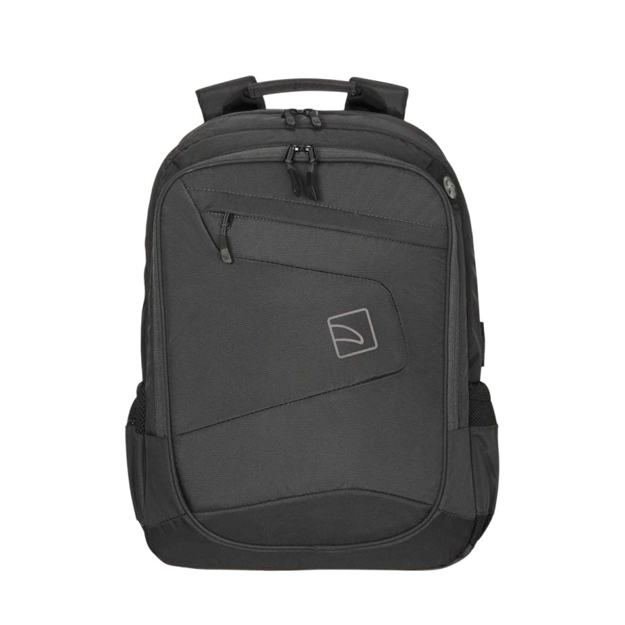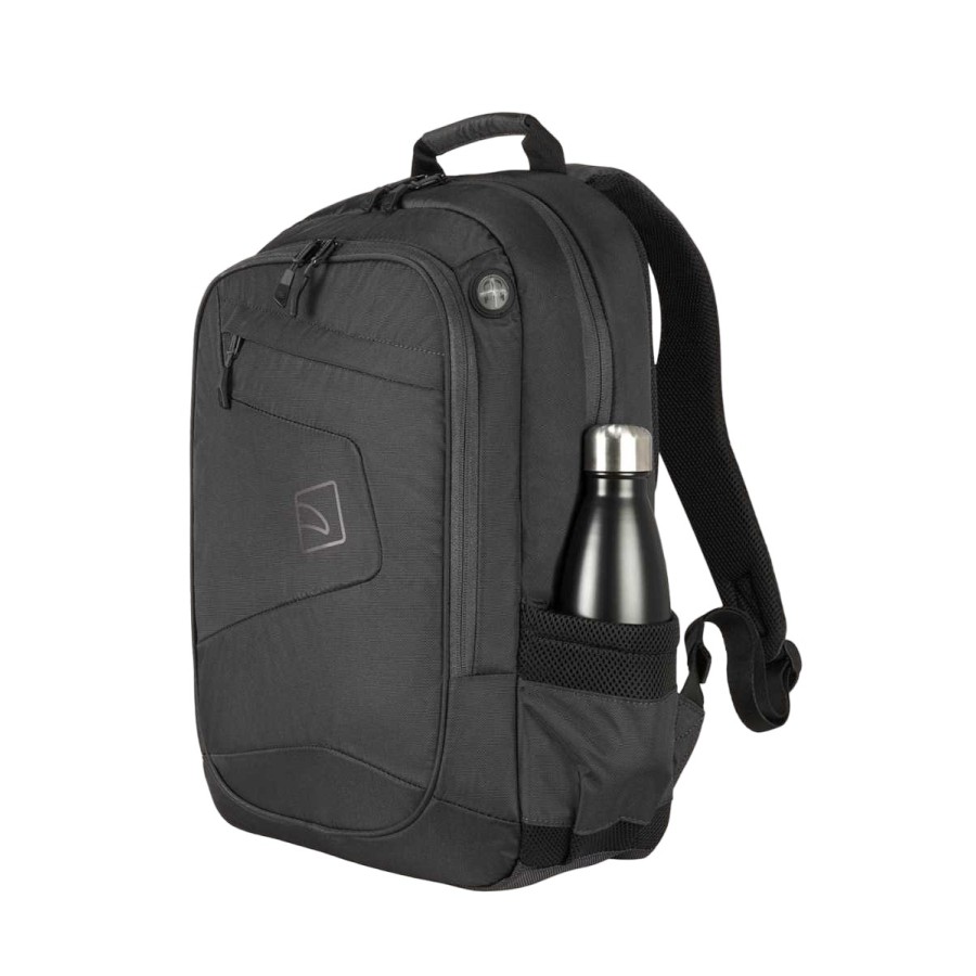 Повсякденний рюкзак Tucano Lato 15 в діловому стилі зі спортивними нотками розраховано для 16-дюймового MacBook Pro та 15,6-16 дюймових ноутбуків. Виготовлений із матеріалів з використанням переробленого пластику. Організована передня зовнішня кишеня та маленька кишеня для аксесуарів, обидві на блискавці. Невеликий спеціальний отвір дозволяє виводити навушники. Велике внутрішнє відділення оснащене м'якою подвійною кишенею з фіксуючим ремінцем на липучці (окрема кишеня для ноутбука і окрема кишеня для планшету). Збоку дві еластичні сітчасті кишені для пляшок, парасольок і предметів подібного розміру. Задня сторона, з ергономічною спинкою та регульованими м'якими плечовими лямками, оснащена паском для кріплення рюкзакая на ручці валізи.