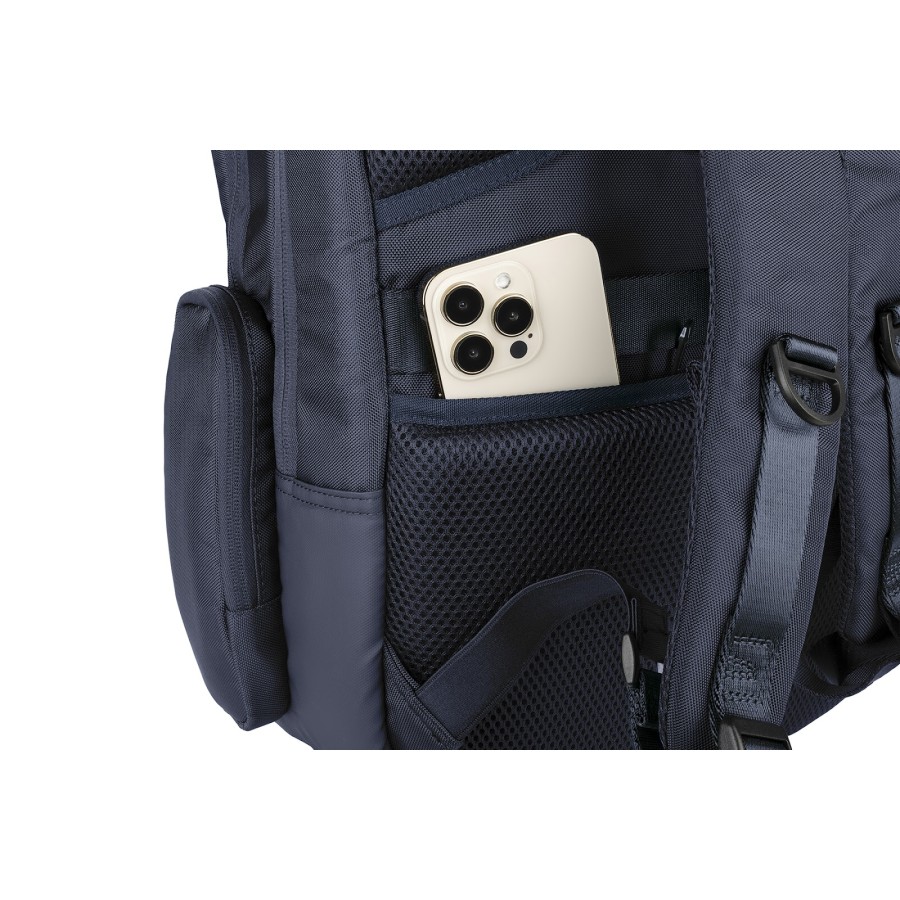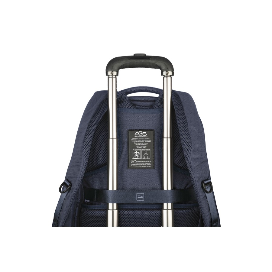 Крім того, дві розширювані бічні кишені на блискавці пропонують ще більше місця для вертикальних аксесуарів. Спинка ергономічна і оснащена м'якими плечовими ременями з еластичною підвіскою AGS, і додатково ременем-фікстатором, для розміщення рюкзака на телескопічній ручці валізи, і потайною кишенею (антизлодій). Зйомний дощовик, захований внизу, дозволяє додатково захистити рюкзак і вміст в особливо дощову погоду.