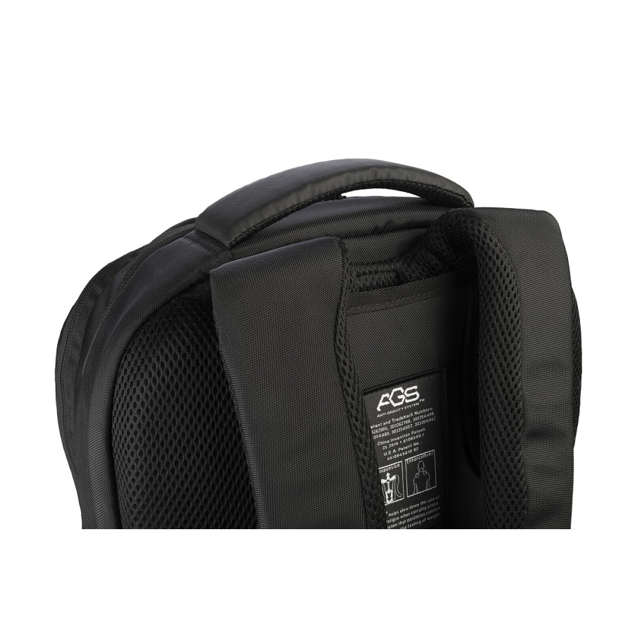 Крім того, дві розширювані бічні кишені на блискавці пропонують ще більше місця для вертикальних аксесуарів. Спинка ергономічна і оснащена м'якими плечовими ременями з еластичною підвіскою AGS, і додатково ременем-фікстатором, для розміщення рюкзака на телескопічній ручці валізи, і потайною кишенею (антизлодій). Зйомний дощовик, захований внизу, дозволяє додатково захистити рюкзак і вміст в особливо дощову погоду.