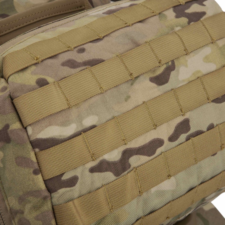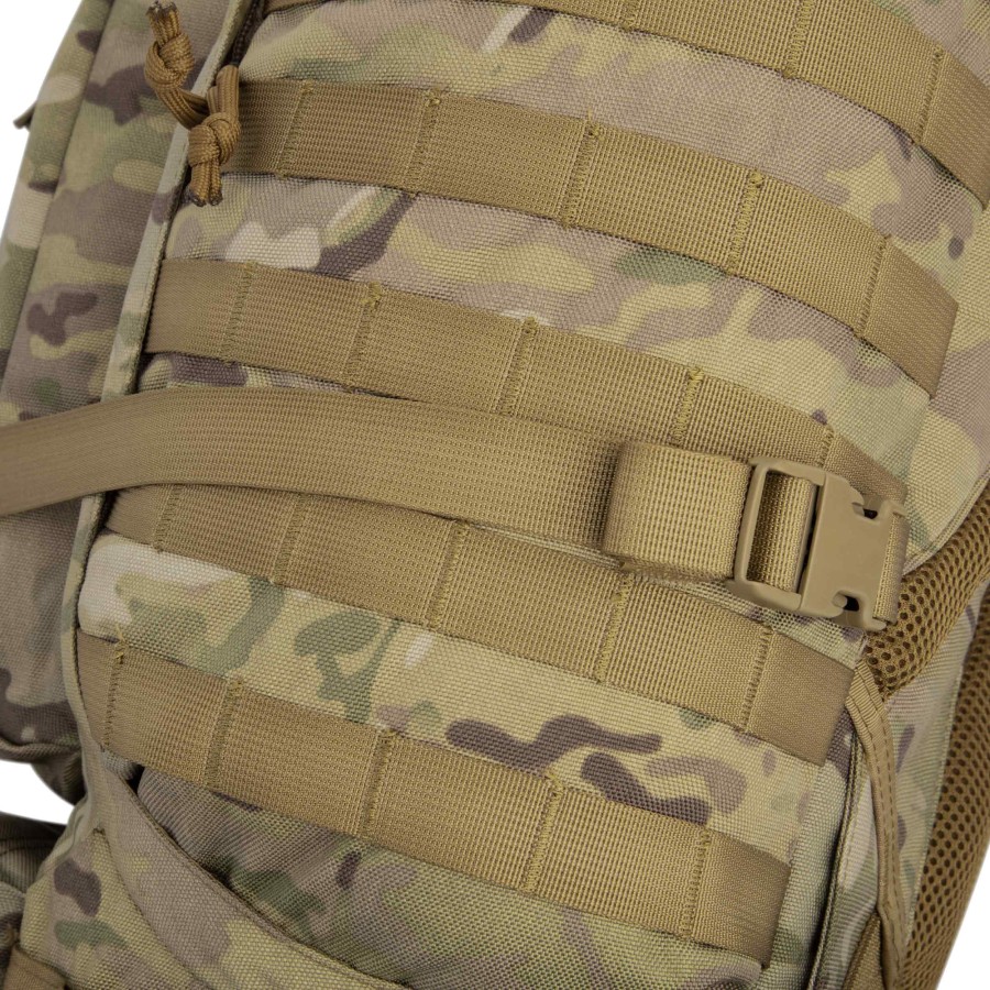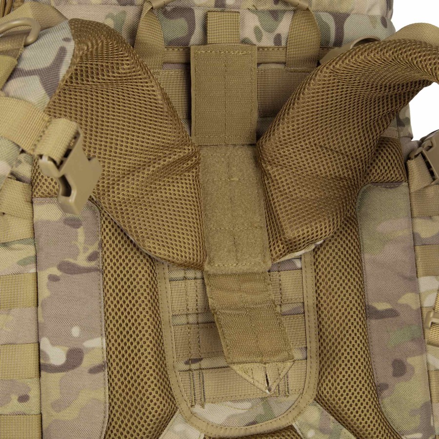 На кишенях та боках моделі 2E Tactical Large Capacity передбачено систему кріплення Molle – спеціальні нейлонові стропи, для безлічі необхідних речей (підсумку, навісних кишень, боєкомплекту тощо – залежно від умов), які неможливо або недоцільно класти в рюкзак. Розвантажувальна система та поясне підтримання забезпечують комфорт у тривалих походах. Широкі плечові ремені зі щільним наповнювачем підсилені додатковими стропами, регулювані за довжиною і мають нагрудний фіксатор. Це знижує навантаження на спину, гарантує надійну фіксацію та запобігає ковзанню рюкзака. Бічні компресійні ремені для затягування рюкзака оснащені карабінами фасткекс. У місткому рюкзаку передбачено окремі великі (2) та додактові (6) відділення, убезпечуючи речі від пошкодження та змішування.