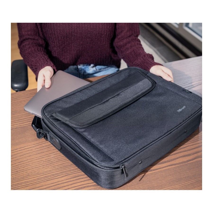 Зберігайте свій ноутбук у великому м’якому відділенні. Зберігайте аксесуари, периферійні пристрої та особисті речі в додаткових відділеннях. Захищайте навколишнє середовище завдяки переробленому матеріалу, з якого виготовлена ця сумка для ноутбука. Trust Atlanta безпечний у різних аспеках.